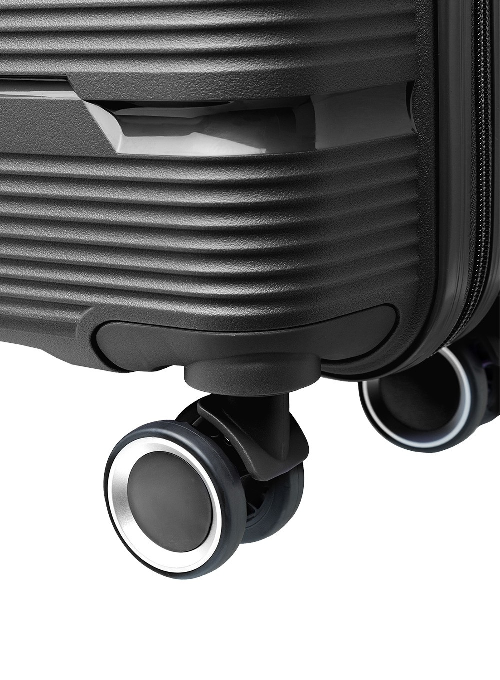 - Cztery skrętne koła 360° ułatwiają manewrowanie walizką w trakcie jej prowadzenia