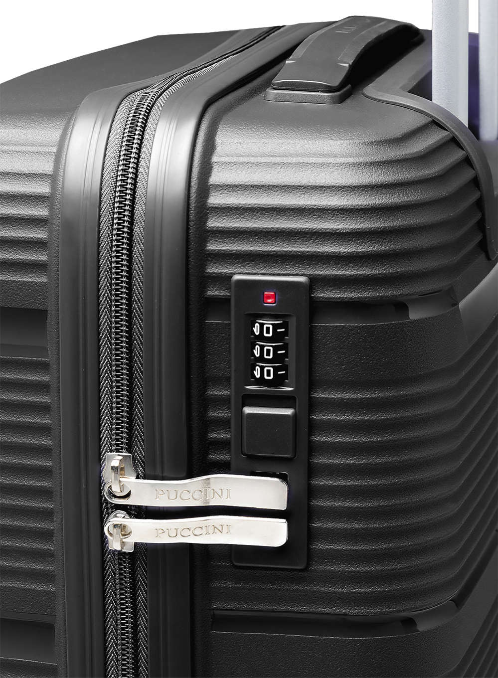 Dla bezpieczeństwa i ochrony zawartości średnia walizka Puccini Casablanca ma wbudowany zamek szyfrowy.