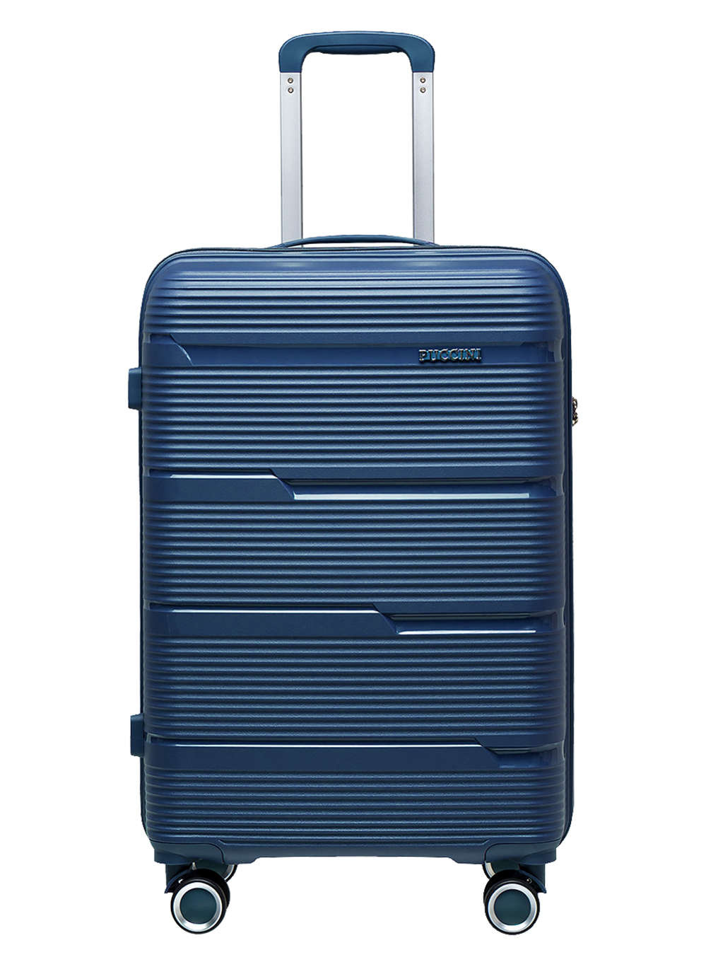 Średni walizka PUCCIN Casablanca charakteryzuje się klasyczną formą z efektownym, nowoczesnym designem. Model jest wykonany z lekkiego i odpornego na uszkodzenia polipropylenu, zdobiony eleganckimi poziomymi żłobieniami. Z przodu umieszczono dyskretny napis z nazwą marki. Kolorystycznie dobrane detale tworzą elegancki bagaż. Wszystkie elementy metalowe są w kolorze srebrnym.