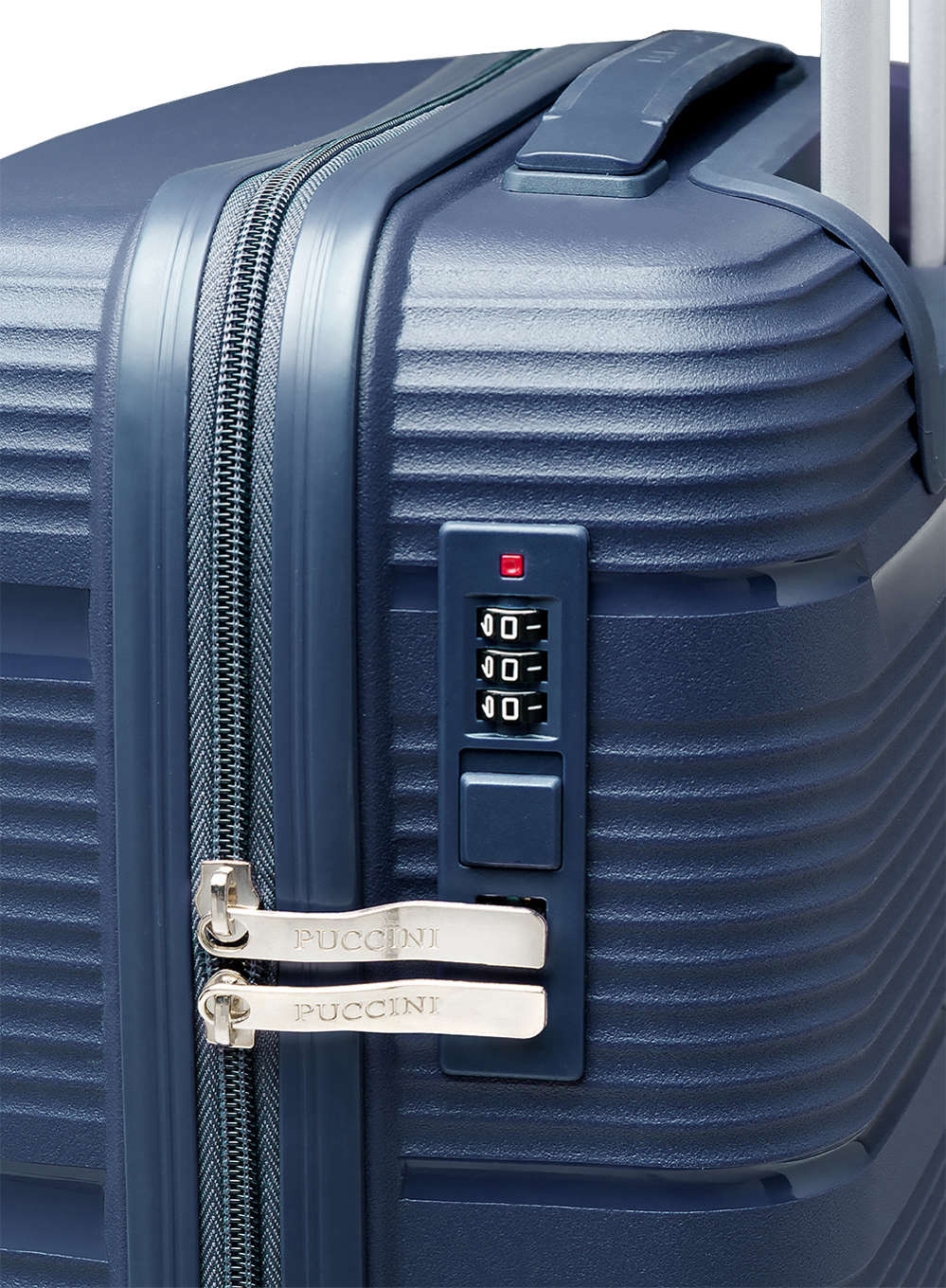 Dla bezpieczeństwa i ochrony zawartości średnia walizka Puccini Casablanca ma wbudowany zamek szyfrowy.