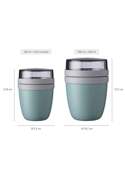 Pojemnik na lunch Ellipse mini Mepal, to młodszy brat dobrze znanego kubka jogurtowego. Dwa oddzielne, szczelne pojemniki na jogurt i granolę lub sałatkę i sos. Wybierz to co lubisz, mieszaj i jedz zdrowo!