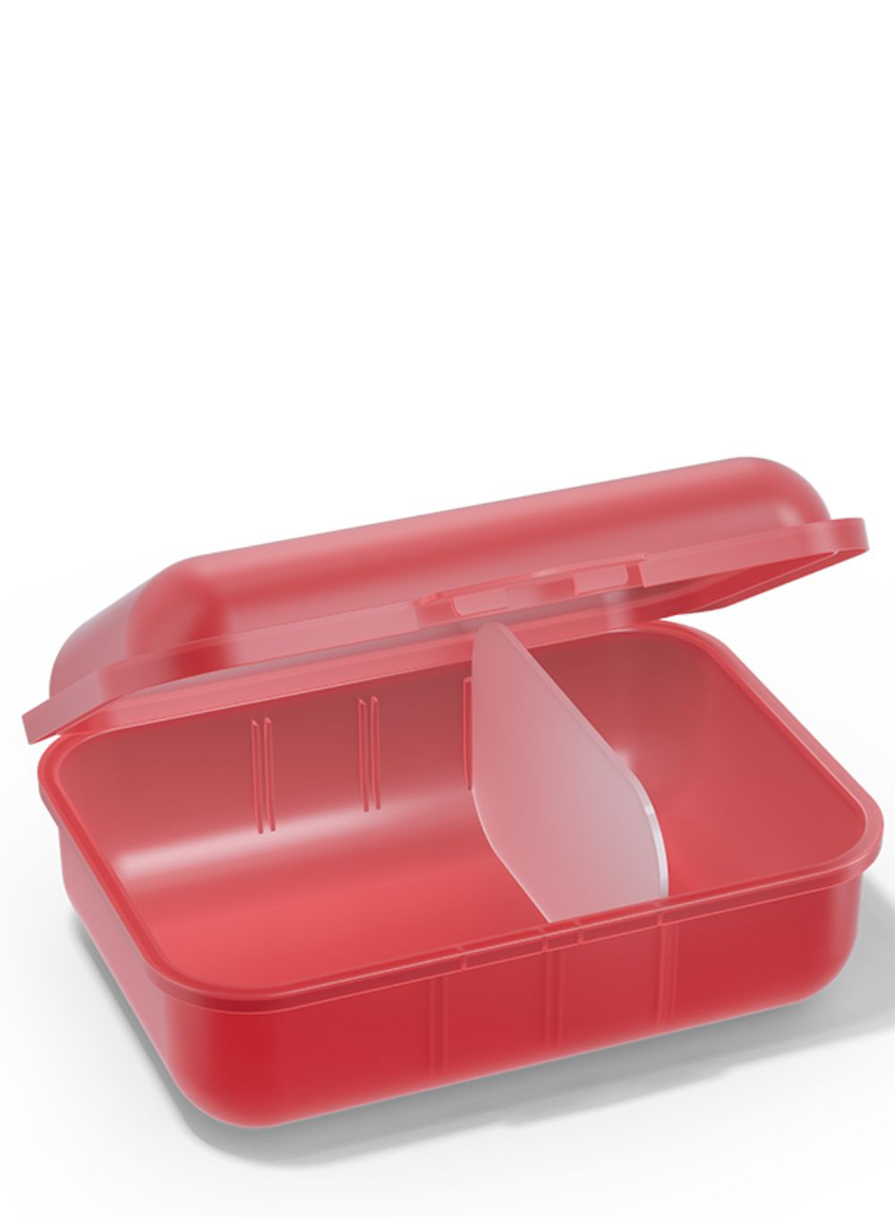 - Lunchbox ma wyjmowane przegródki, które można ustawić w trzech różnych pozycjach