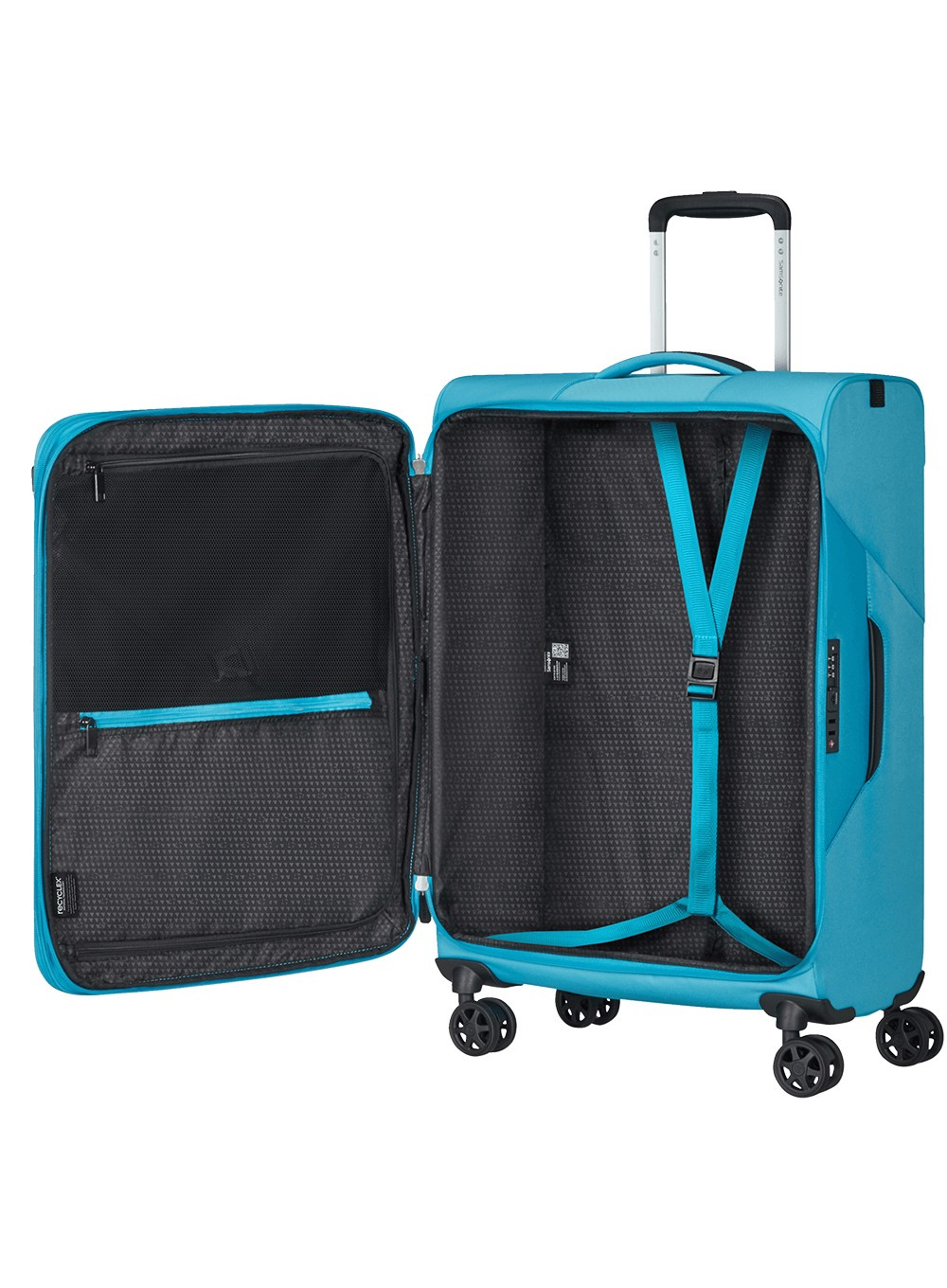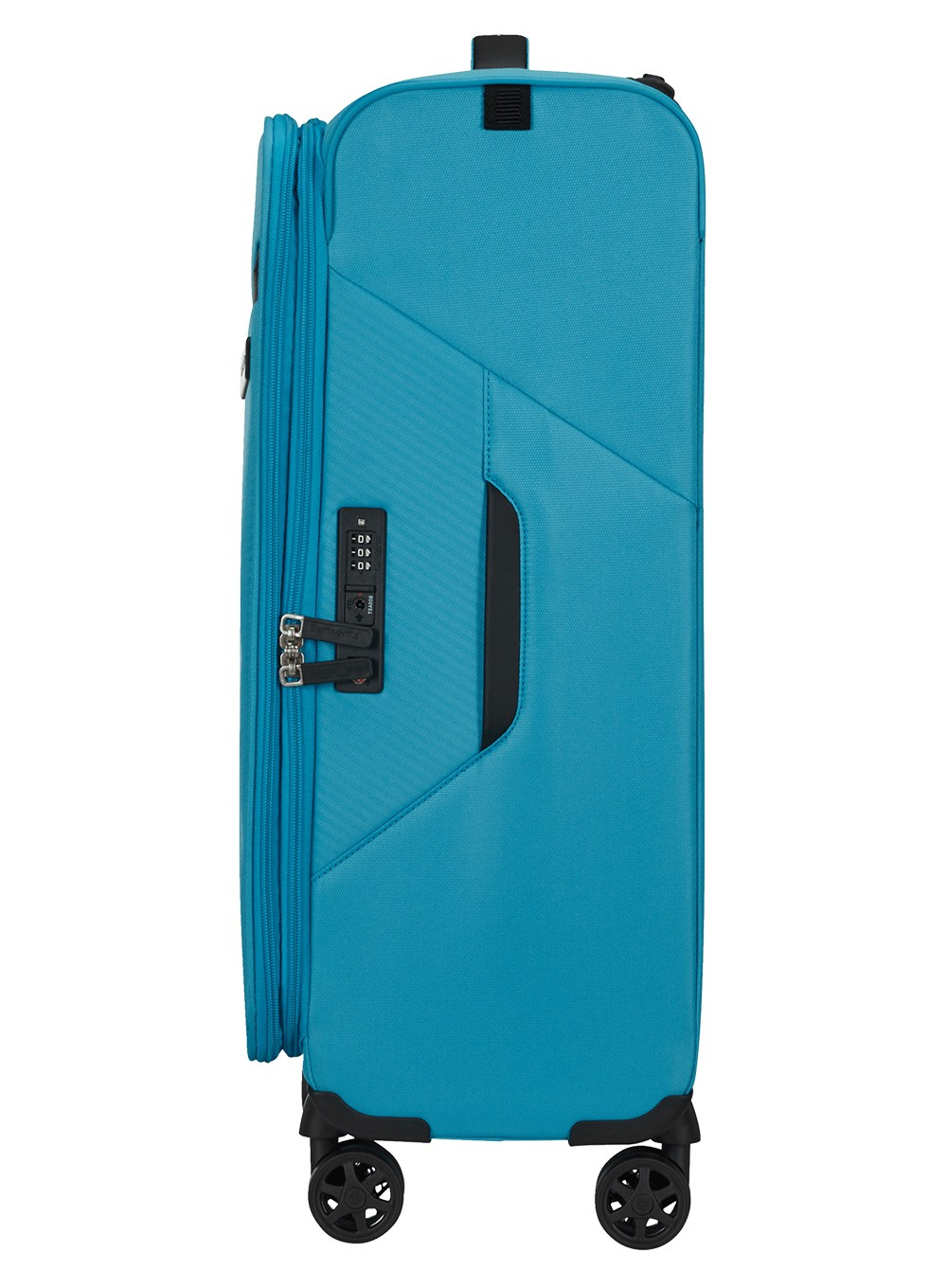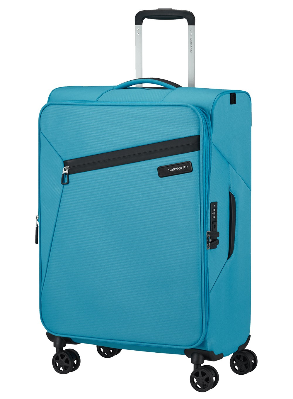 Średnia walizka miękka Samsonite Litebeam umożliwia poruszanie się z dużą prędkością na 4 podwójnych cichych kołach obracających się o 360°. Podwójny teleskopowy uchwyt z możliwością regulacji położenia umożliwia holowanie równie łatwo na 2 kołach za Tobą, jak i na 4 kołach obok Ciebie. Dla wygodnego chwytu ma górny wyściełany uchwyt i płaski uchwyt boczny.