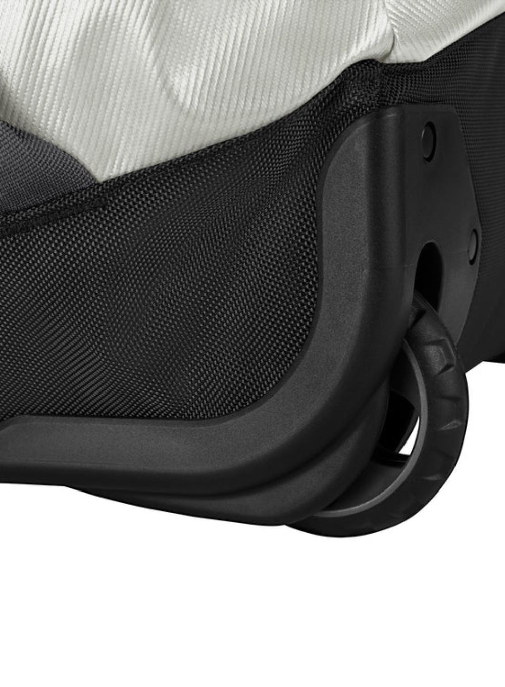 - Ciężką torbę można ciągnąć za sobą przy minimalnym wysiłku, korzystając z mocnych kół z bieżnikiem, które są chronione przez wytrzymałą obudowę