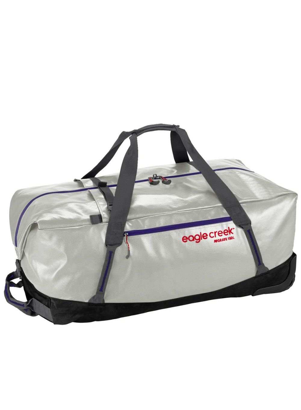 Duża i pojemna torba Migrate Wheeled Duffel 130 l Eagle Creek to propozycja dla lubiących długie wakacje i zabierających duża ilość ekwipunku. Nie martw się o środek transportu i pogodę, z Migrate 130 l dotrzesz wygodnie do każdego celu podróży.