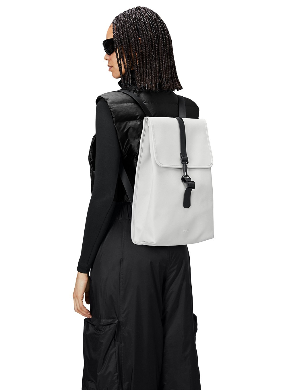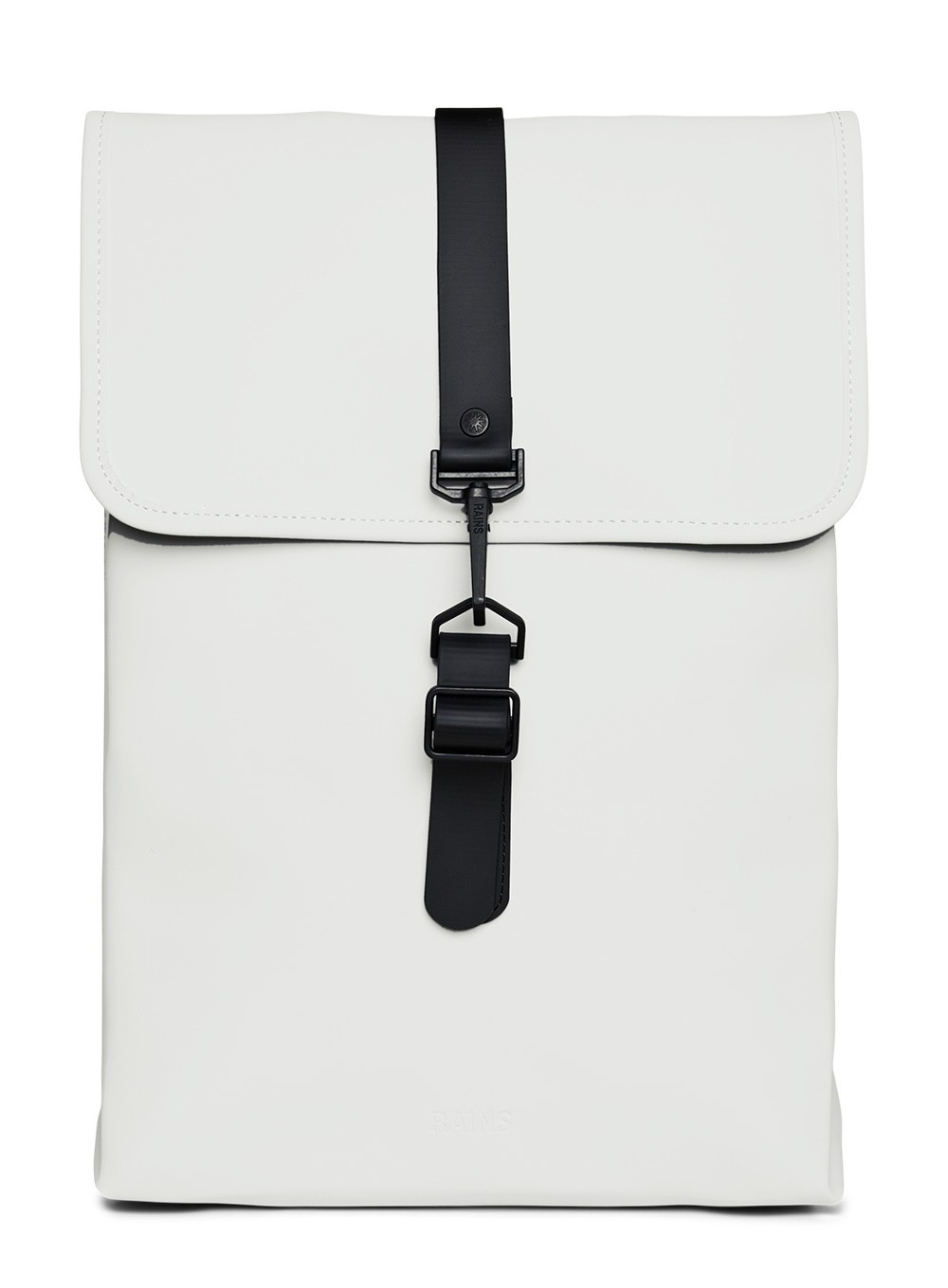 Plecak miejski Rucksack Rains ucieleśnia charakterystyczną estetykę marki, charakteryzującą się widoczną klapą i centralnym paskiem zapinanym na karabińczyk. Minimalistyczny i zawsze nowoczesny wodoodporny plecak ma wewnętrzną kieszeń na laptopa, przestronną komorę główną i przyjemne w dotyku paski ramienne z TPU.