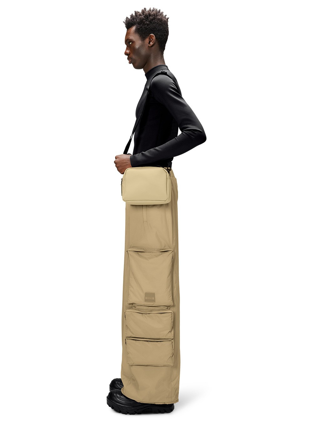 Rains Box Bag to prosta torba codzienna, wykonana z wodoodpornego materiału zapewniającego ochronę przed lekkim deszczem. Przeznaczona do noszenia na ramieniu, w poprzek ciała lub w dłoni.