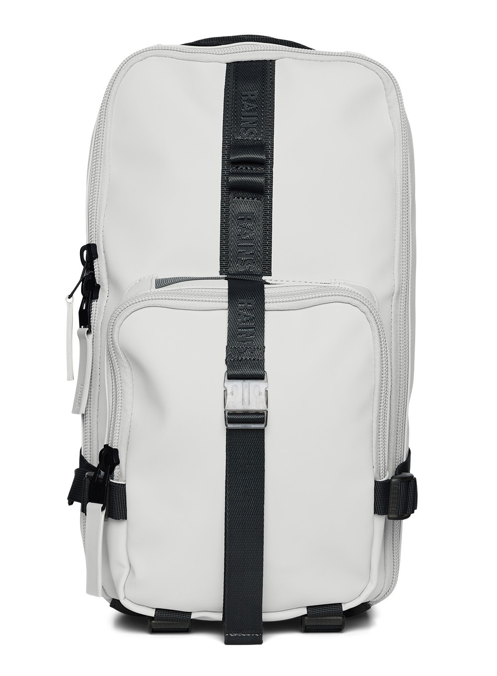 Rains Trail Rucksack to połączenie czystej geometrycznej formy z paskami z taśmy tworzące nowoczesną sportową estetykę. Wodoodporny plecak dzienny Rains Trail Rucksack składa się z dwóch przestrzeni: dużej tylnej komory z kieszenią na laptopa i kieszenią zapinaną na zamek oraz dużej przedniej kieszeni - obie dostępne za pomocą powlekanych zamków błyskawicznych.