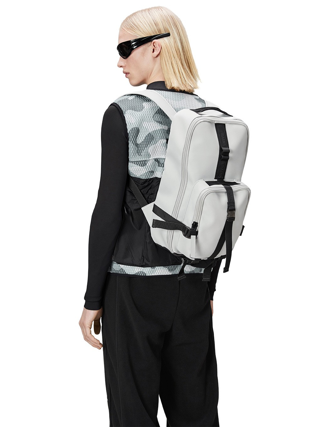 Plecak Trail Rucksack jest wykonany z charakterystycznej dla Rains wodoodpornej tkaniny PU, zaprojektowanej z myślą o wytrzymałości, trwałości, która jest gładka i przyjemna w dotyku.