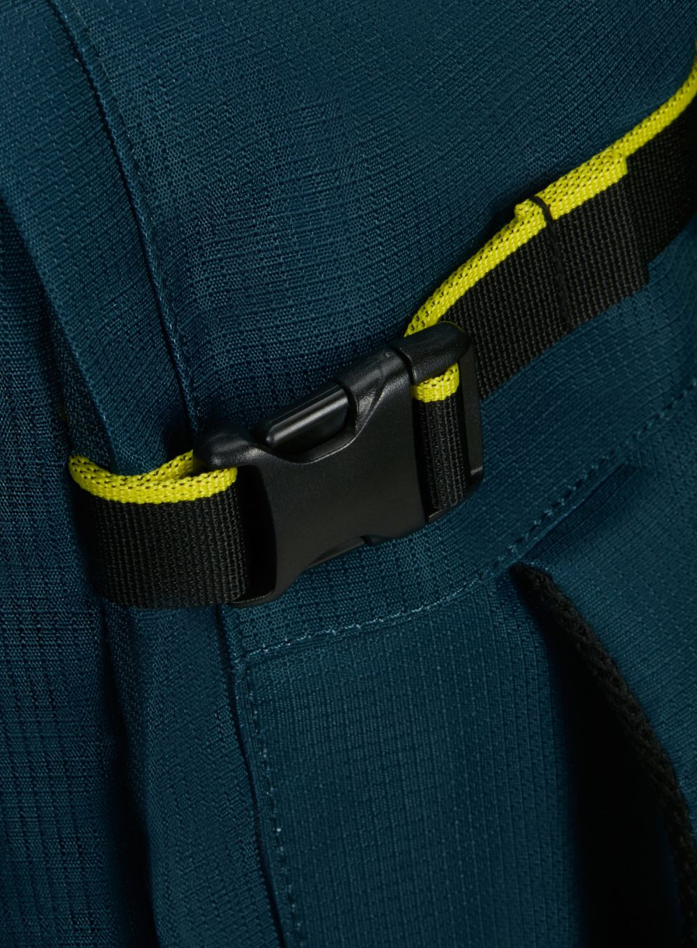 Plecak posiada wygodne pasy ramienne, wyściełany panel tylny i miękkie uchwyty do przenoszenia. Wykończony pasami kompresyjnymi do regulacji objętości na jednym z boków i pasem do mocowania na walizce lub torbie podróżnej. Zarówno wewnętrzna, jak i zewnętrzna tkanina są wykonane z przetworzonych butelek PET.