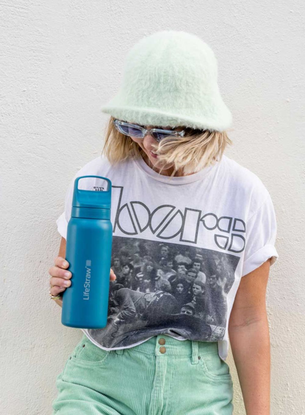 Termiczna butelka filtrująca LifeStraw Go Steel pozwala pić czystą wodę z dowolnego źródła i jest wielokrotnego użytku, dlatego nie musisz martwić się o zapas wody, ani nosić ze sobą wody w plastiku.