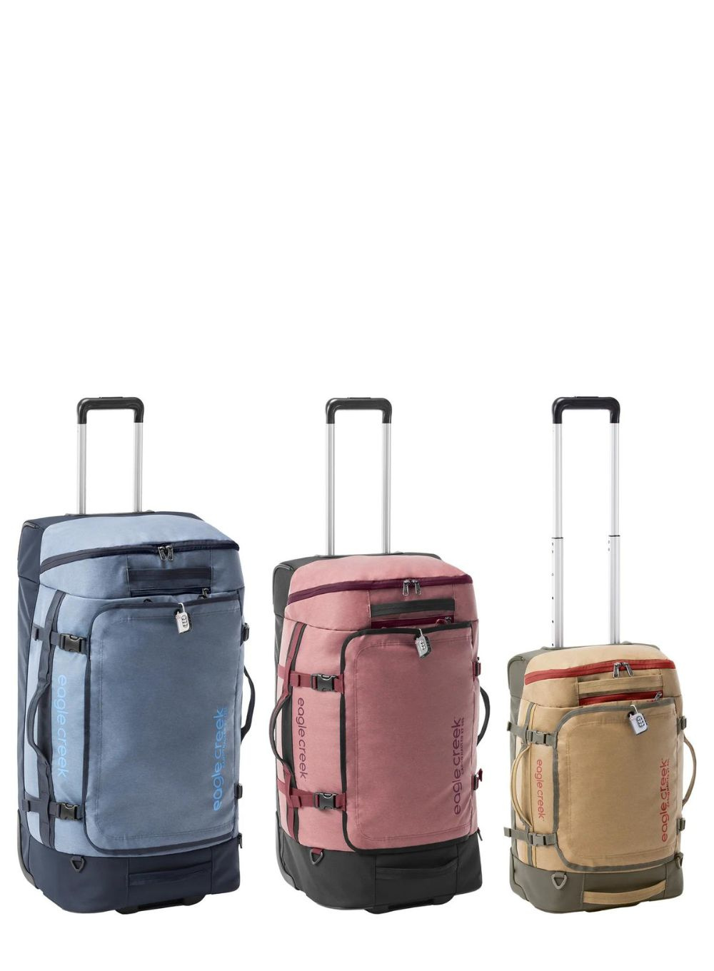 Wzmocnione uchwyty ułatwiają podnoszenie na bagażnik dachowy, a składane paski plecaka ułatwiają wchodzenie po schodach i do mieszkań na piętrze. Torba podręczna Eagle Creek Cargo Hauler XT Wheeled Duffel 36 l jest wykonana z materiałów pochodzących z recyklingu.