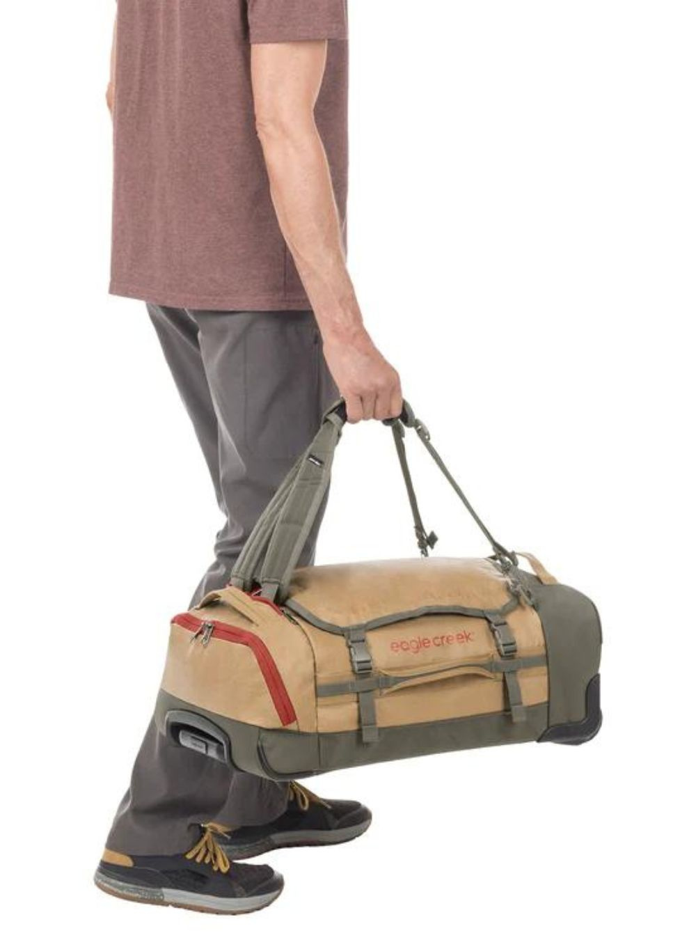 Podróżna torba na dwóch kołach z szelkami plecaka Eagle Creek Cargo Hauler XT Wheeled Duffel o pojemności 36 l uszyta z wyjątkowo trwałych materiałów z powłoka przeciwdeszczową dla maksymalnej ochrony Twojego sprzętu i rzeczy.