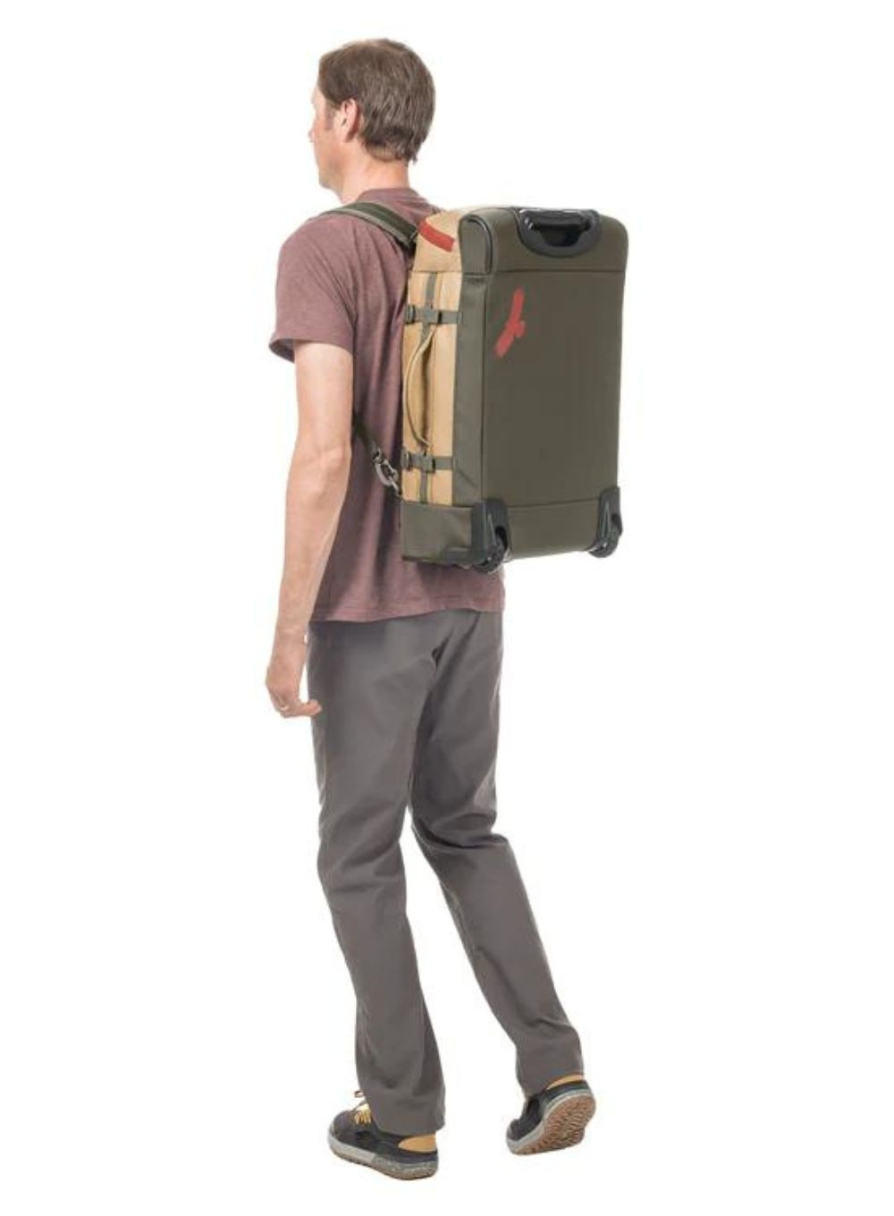 • Wytrzymałe uchwyty, duże koła terenowe i poręczne, chowane paski plecaka ułatwiają przenoszenie na trzy różne sposoby