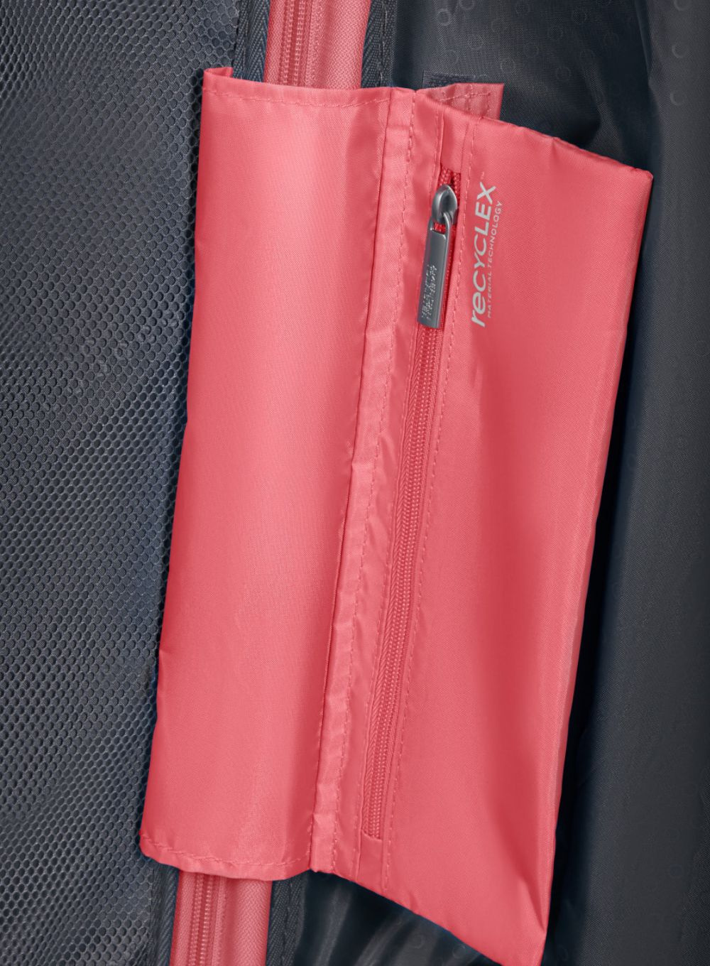• Wnętrze, materiał ekspandera (klina poszerzającego) i zamki błyskawiczne wykonane są z poliestru rPET z 18 butelkami PET pochodzącymi z recyklingu, przy użyciu technologii materiałowej Recyclex™