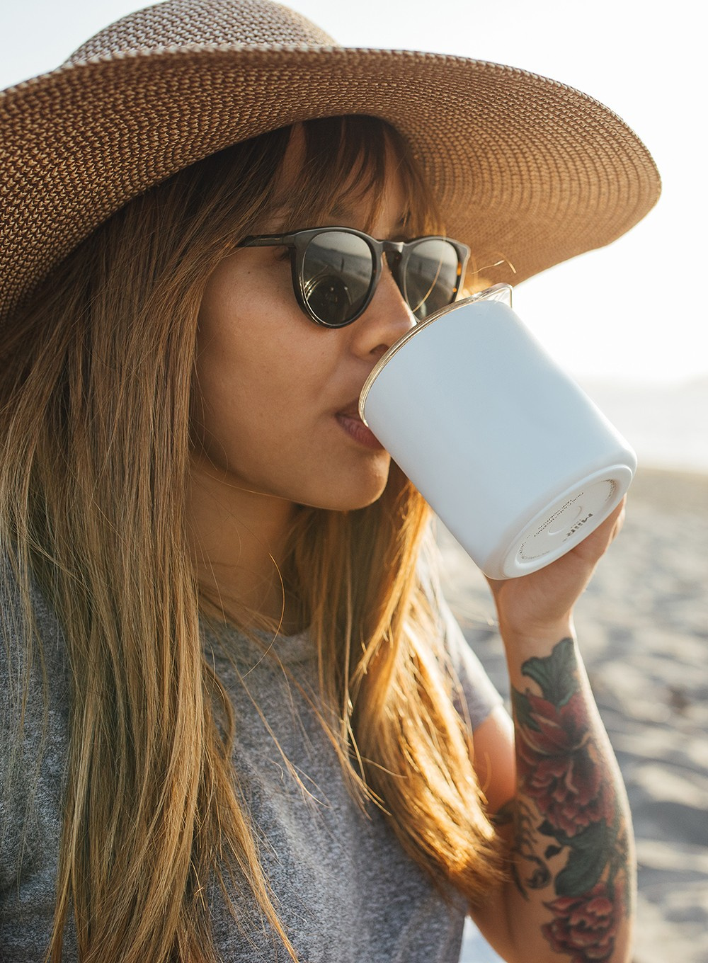 Kubek tworzy idealne połączenie z pokrywką przesuwną typu "Press-fit". Aby zakryć otwór do picia, wystarczy przesunąć zamknięcie gdy nie jest używany, aby zapewnić dodatkową dawkę izolacji i spokój ducha przed zachlapaniami.