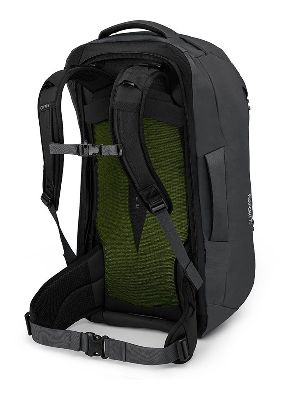 Model Farpoint 70 Travel Pack ma precyzyjną regulację tułowia, ramę LightWire do podnoszenia ładunku i oddychające szelki / pas biodrowy – połączone z praktyczną funkcjonalnością podróżną.