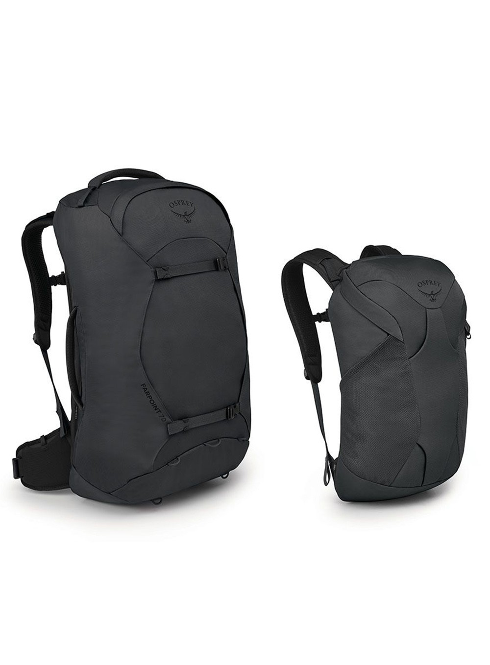 Pojemny plecak turystyczny Osprey Farpoint 70 z dodatkowym odpinanym mniejszym plecakiem, zapewnia dużą pojemność na Twoje rzeczy i komfortowe noszenie niezależnie od tego czym podróżujesz.