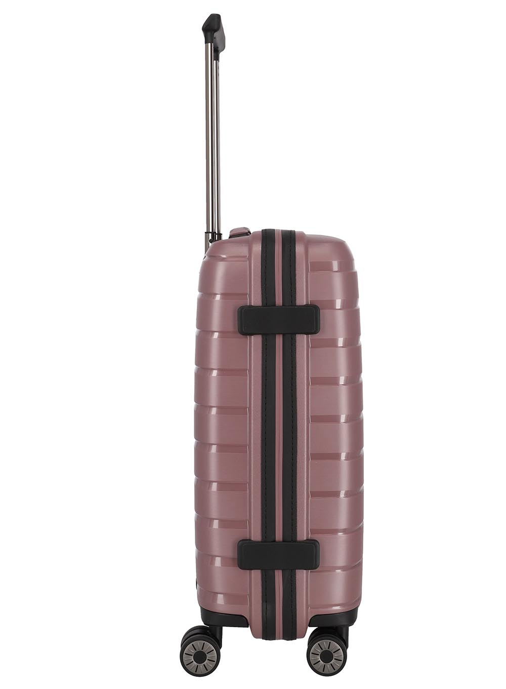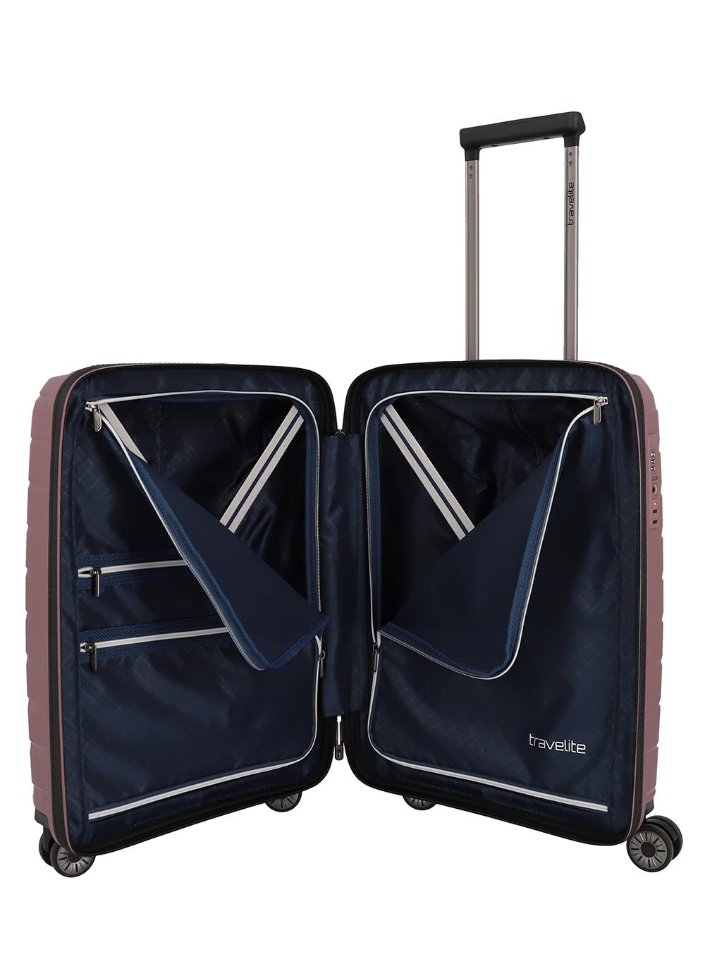 Mała walizka Travelite Air Base to walizka dla najbardziej wymagających użytkowników. Zastosowano w niej wysokiej jakości polipropylen i jednocześnie ograniczono wagę do minimum. System jezdny oparty jest na 4 podwójnych kółkach, które gwarantują bezproblemową jazdę z bagażem.