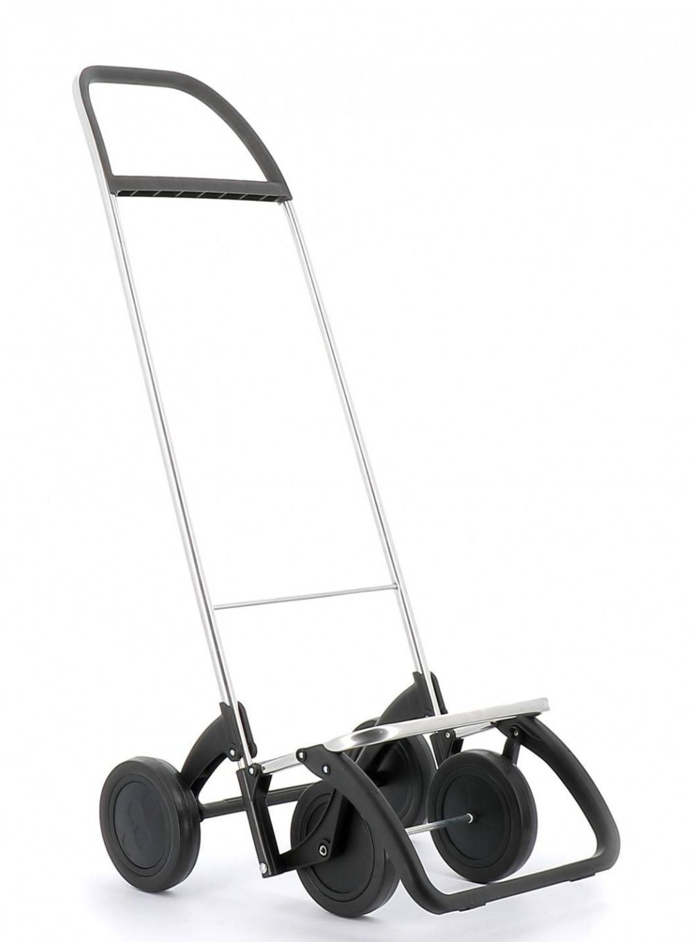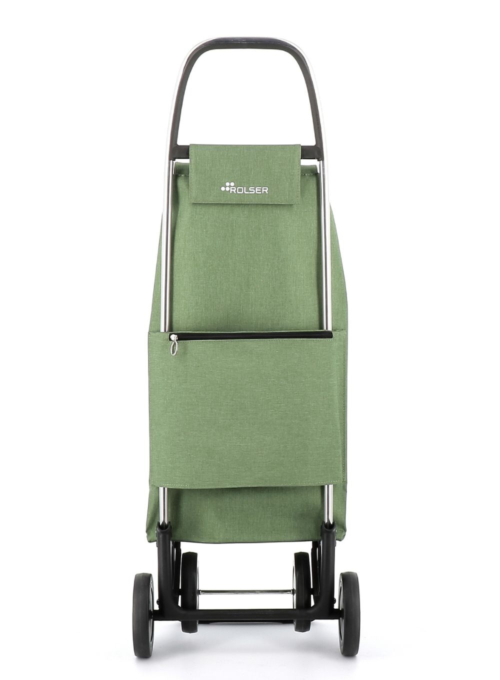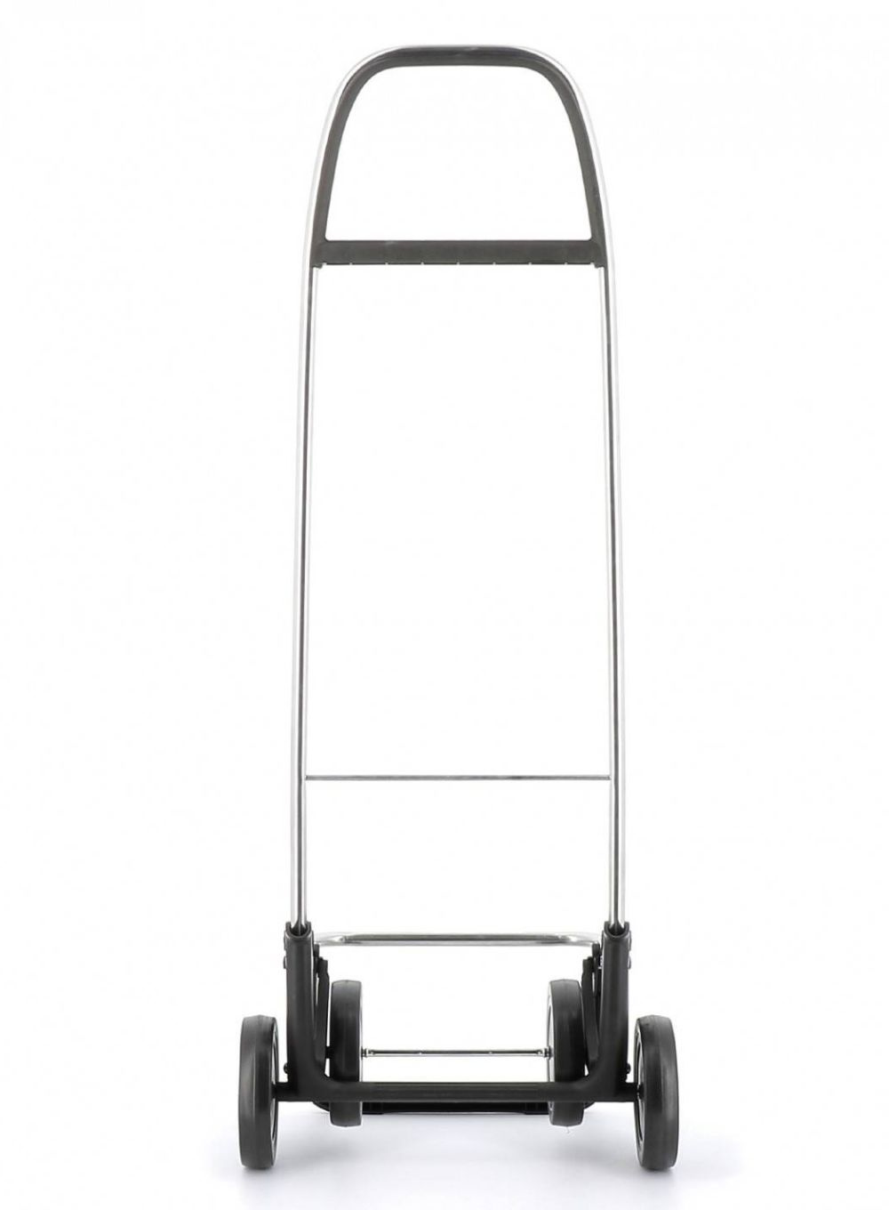 Wózek sklepowy Rolser z aluminium z 2/4 kołami, aby uniknąć niepotrzebnych obciążeń. W pozycji z dwoma kołami, aby ciągnąć, gdy jest pusty i w pozycji z czterema kołami, aby pchać, gdy jest pełny. Podwozie z przednim wspornikiem i składaną podstawą do przechowywania w małych przestrzeniach.