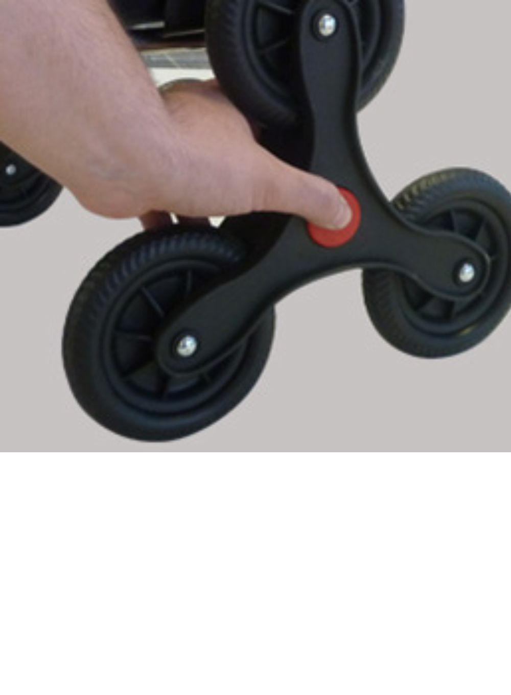 • 6 kółek dostosowujących się do podłoża (po 3 z każdej ze stron) ułatwiających wnoszenie zakupów po schodach