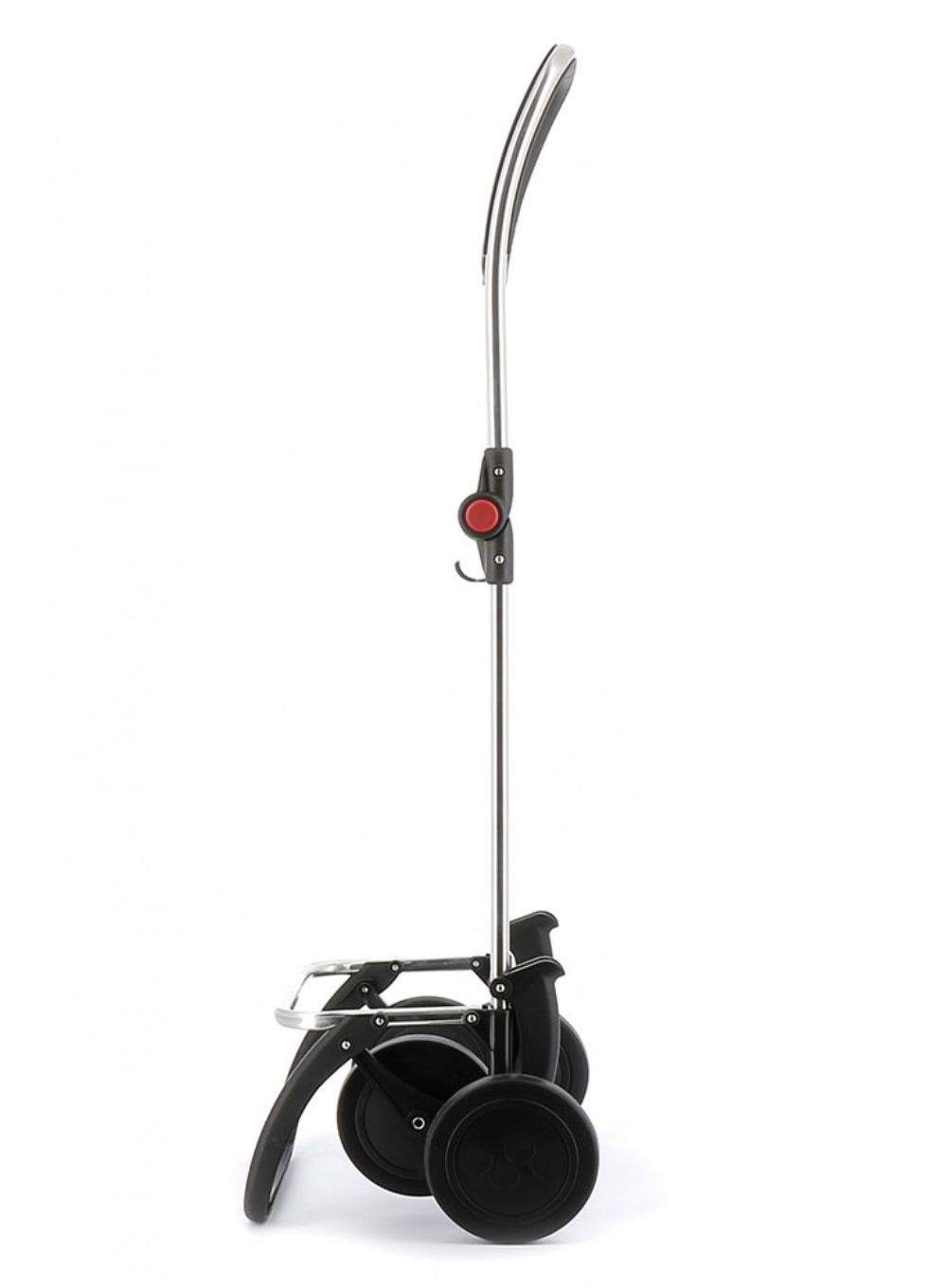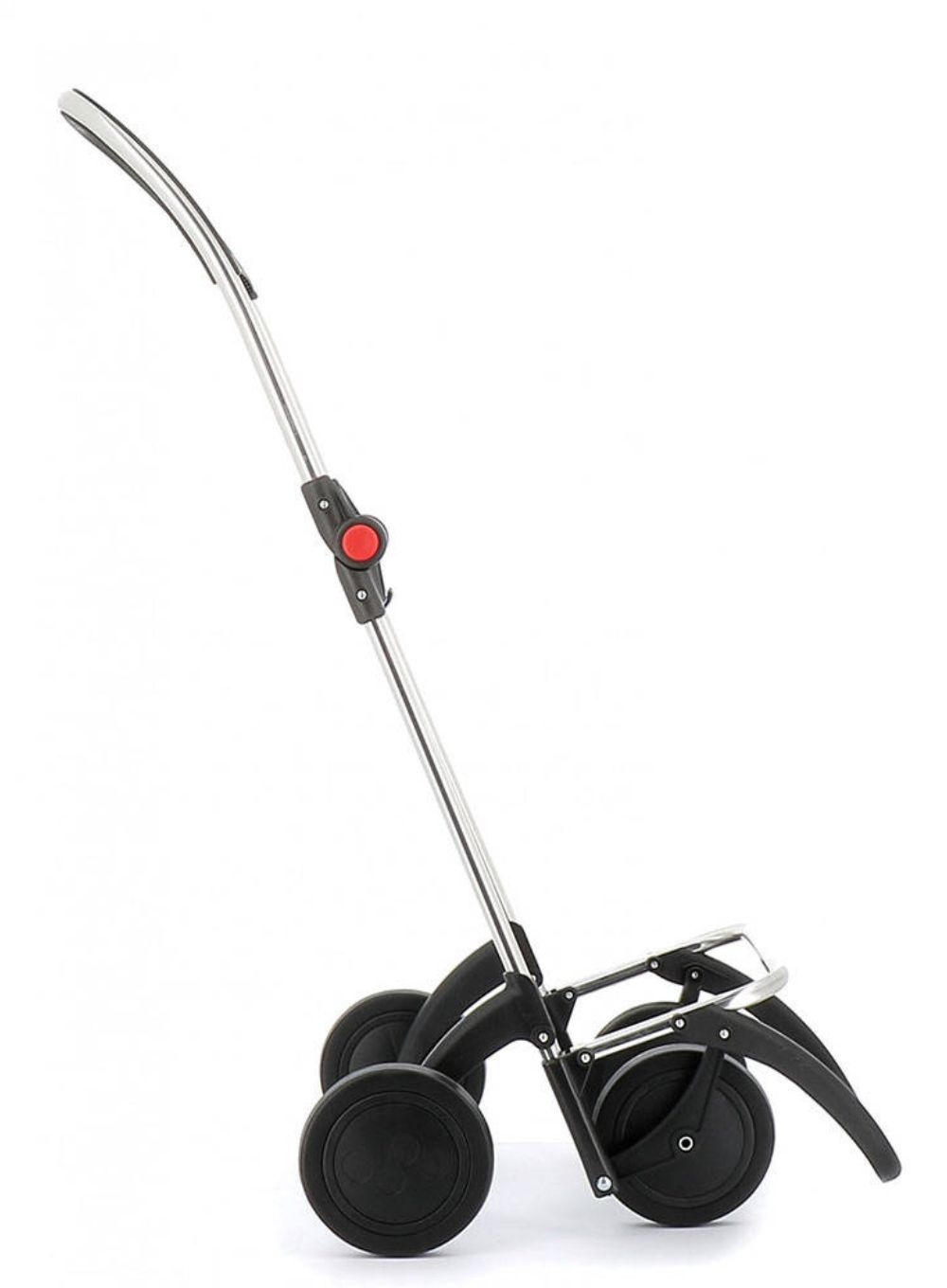 Ten czterokołowy model możemy swobodnie nieść w ręce kiedy jest złożony, a następnie zaczepić go poprzez innowacyjny zaczep (adapter) do wózka w markecie, dzięki czemu nie trzeba go zostawiać przy wejściu do sklepu!