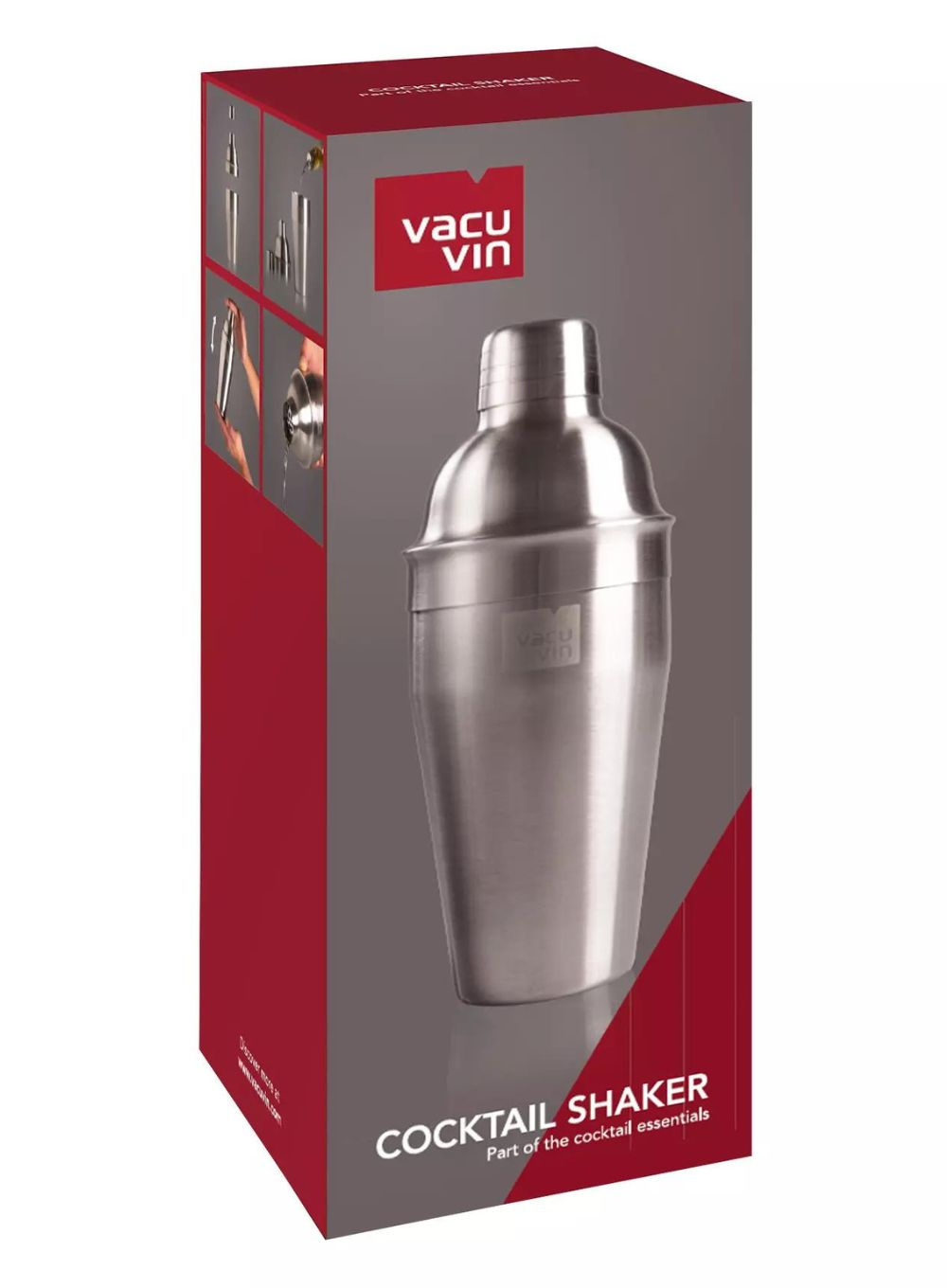 Shaker do koktajli Vacu Vin jest częścią kolekcji Cocktail Essentials. Shaker do koktajli ze stali nierdzewnej (550 ml) to niezbędne narzędzie zarówno dla początkujących, jak i doświadczonych domowych twórców koktajli. Wbudowane sitko umożliwia łatwą filtrację większych składników i otrzymujemy klarowne i pyszne koktajle.