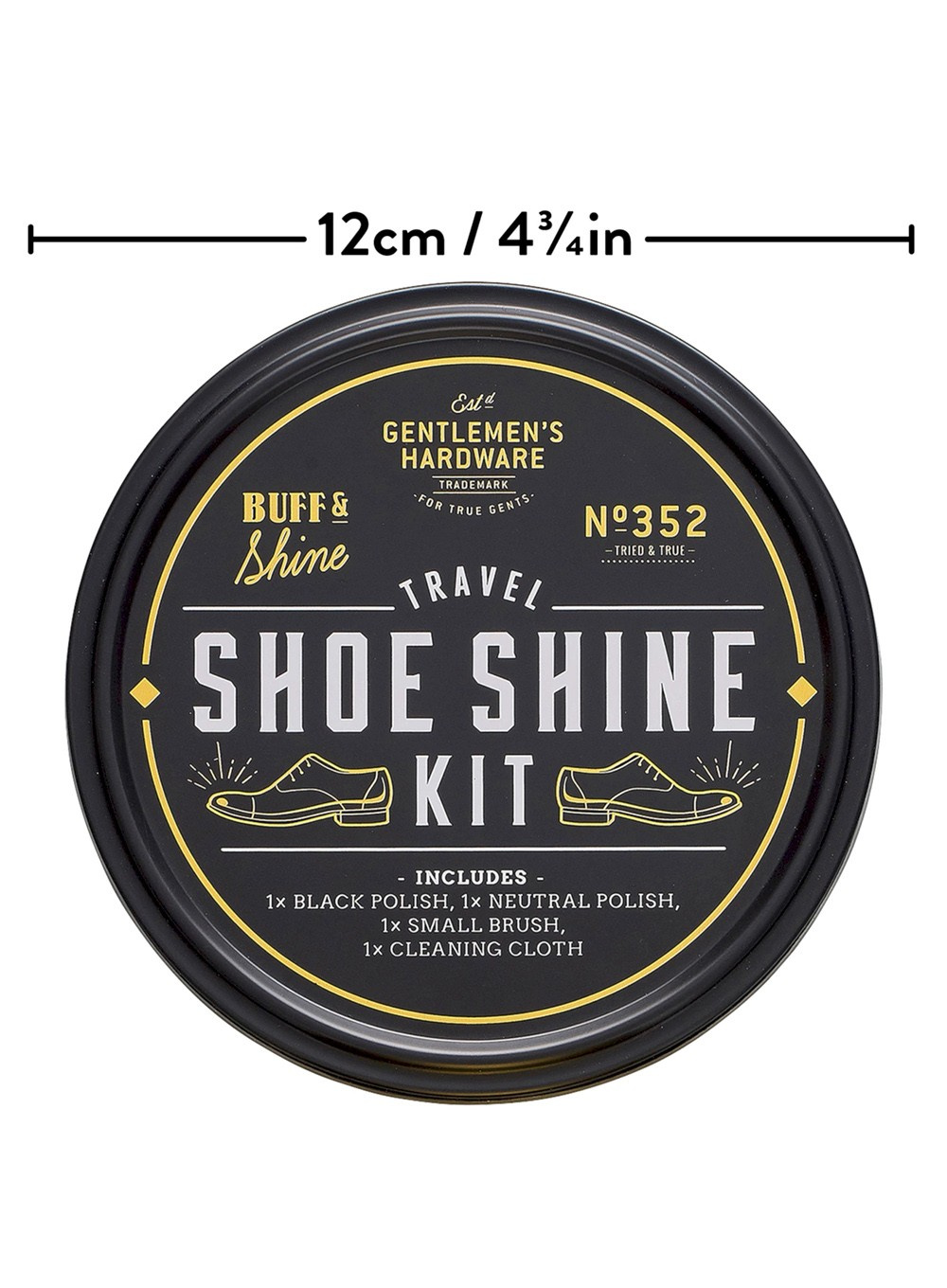 Nadaj swoim butom odpowiednie wygładzenie i wypolerowanie i pokaż się z jak najlepszej strony dzięki puszce z akcesoriami do czyszczenia butów Gentlemen's Hardware Shoe Shine Kit.
