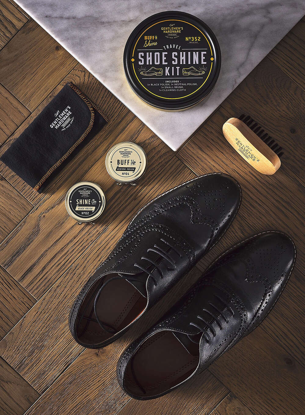 Najważniejsze cechy zestawu Gentlemen's Hardware Shoe Shine Kit: