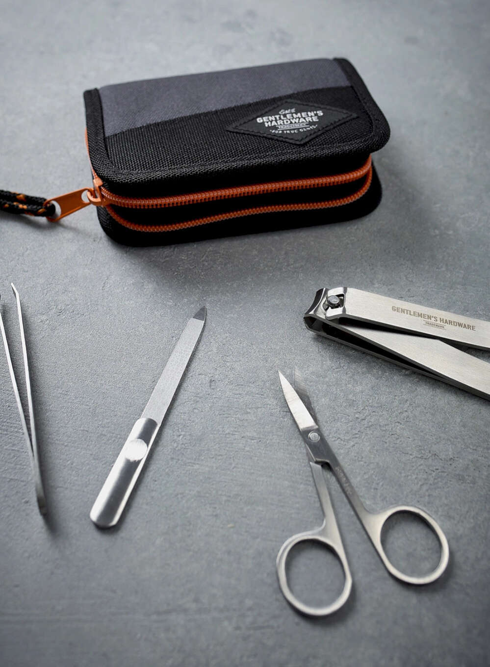Gentlemen's Hardware Manicure Set to zestaw do pielęgnacji stóp i dłoni dla mężczyzn, ukryty w kompaktowym etui.