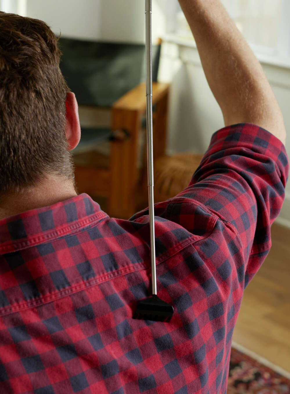 Drapaczka z teleskopową rączką Gentlemen's Hardware Mini Back Scratcher rozciąga się na długość 67 cm, aby dosięgnąć miejsca, którego nie podrapiesz ręką.