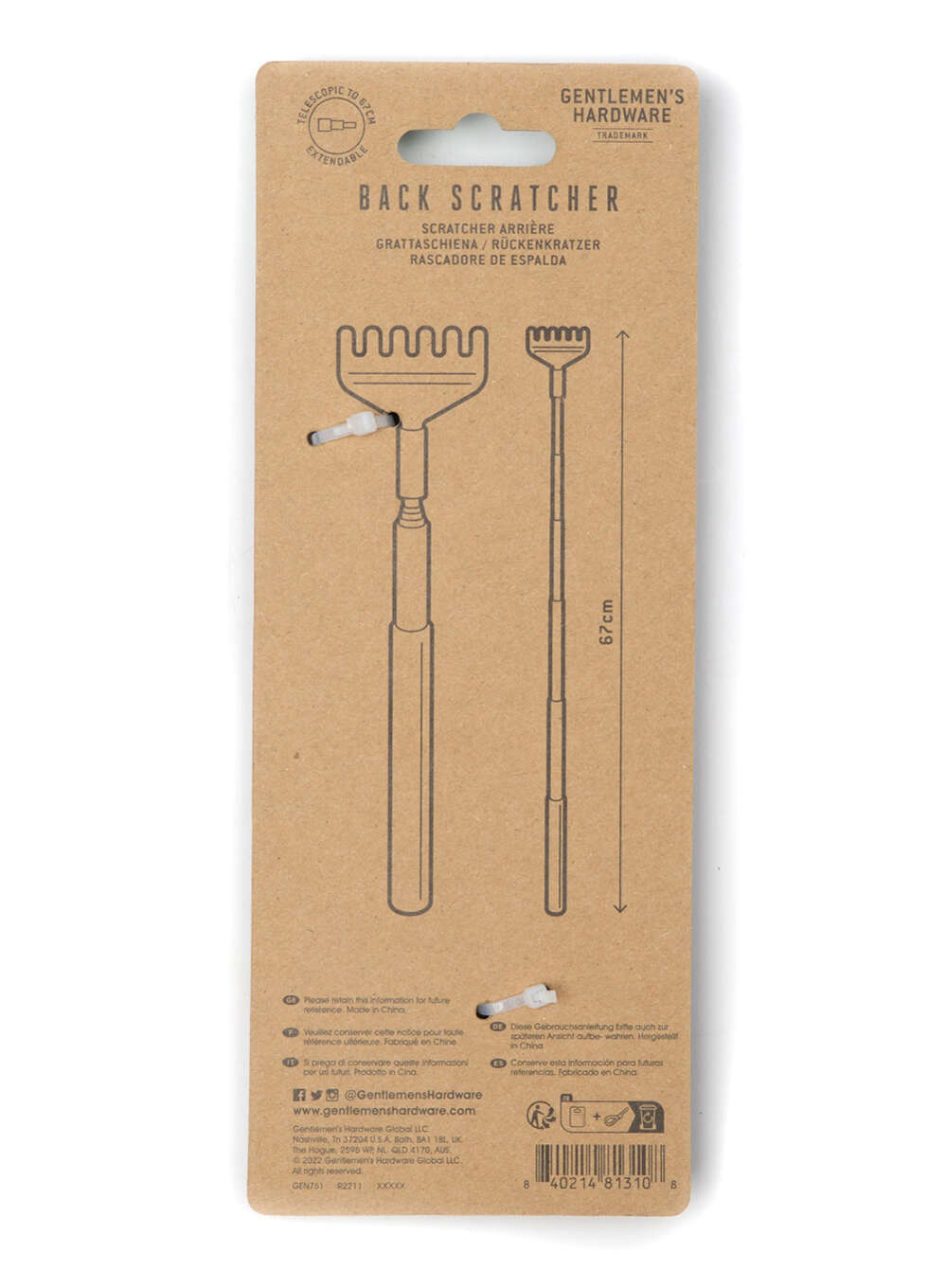 Pozbądź się swędzenia dzięki teleskopowej drapaczce do pleców Gentlemen's Hardware Back Scratcher. Dzięki ergonomicznemu uchwytowi i ząbkom zaprojektowanym do delikatnego drapania, drapaczka do pleców stanowi idealny prezent dla każdego. Nie musisz się martwić o miejsca niedostępne; uchwyt rozciąga się do 67 cm długości.
