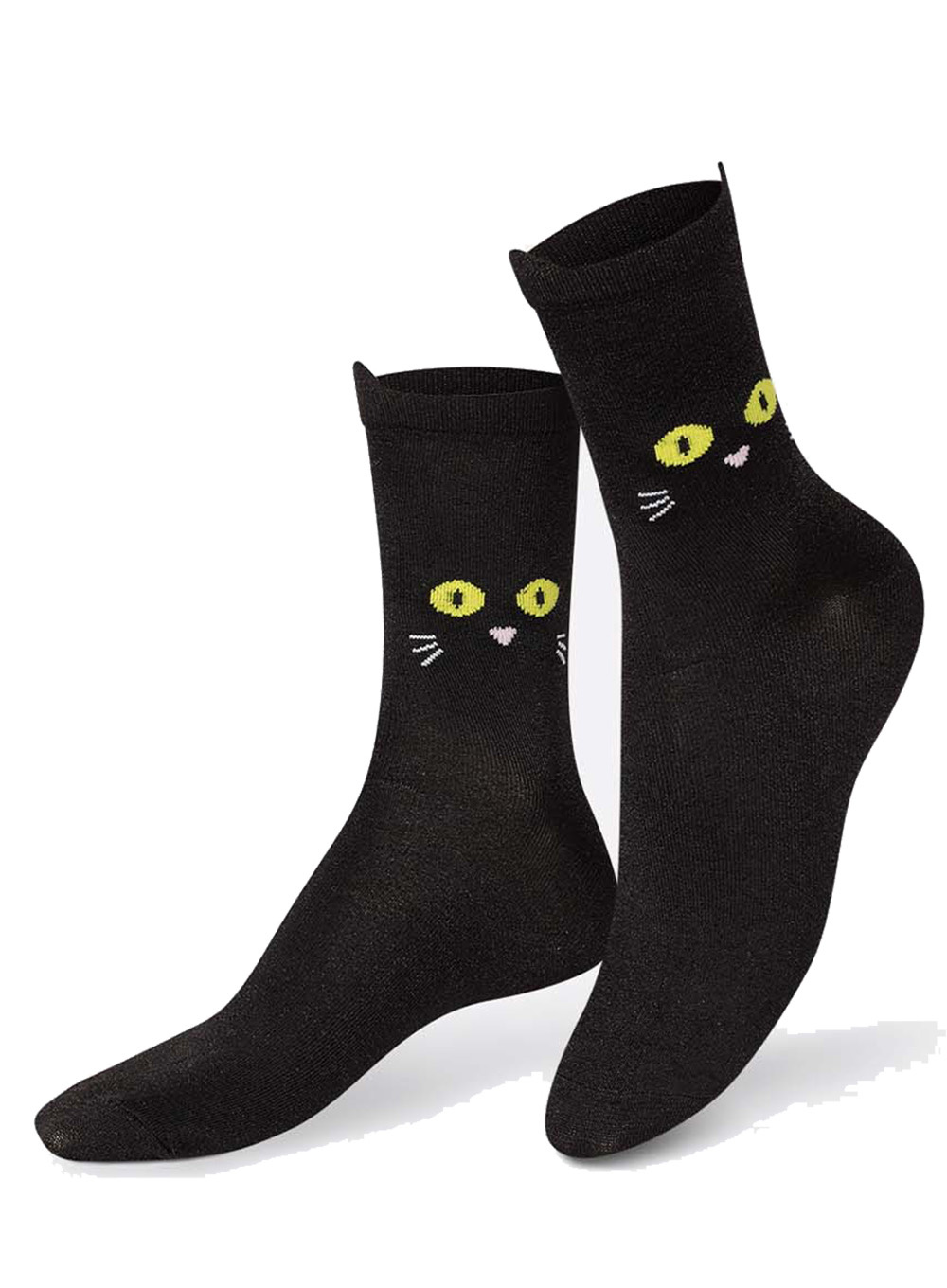 Zabawne, idealnie dopasowane, czarne skarpetki Eat My Socks Cat Walk Black dla miłośników kotów. Czarny koty to nie zawsze zła wróżba! Miał...