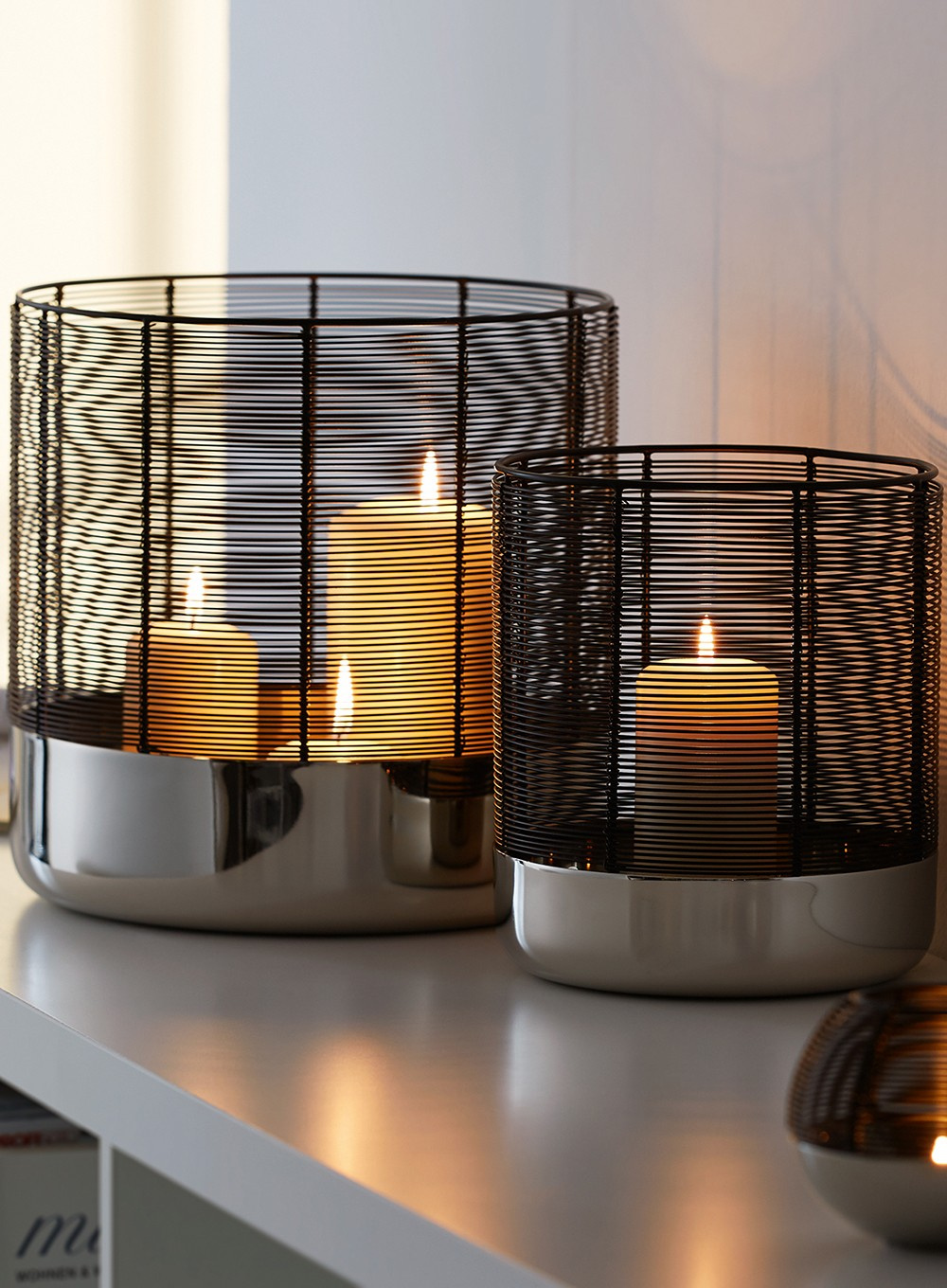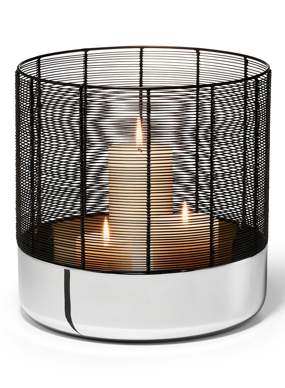 Latarnia świecznik Luna firmy Philippi swoim eleganckim wyglądem wnosi ciepłą atmosferę do każdego pomieszczenia. Można w niej umieścić kilka podgrzewaczy lub świec i oświetlić salon, sypialnię lub strefę przedpokoju. Podstawa latarni wykonana jest niklu polerowanego na wysoki połysk, a klosz z drutu stalowego malowanego proszkowo, który jest nawijany ręcznie.