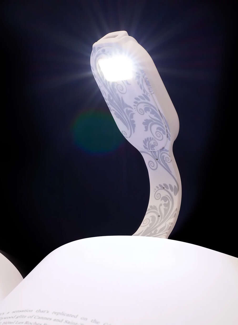 Ładowalna lampka zakładka do książki Thinking Gifts Booklight zapewnia przyjemne światło do czytania.