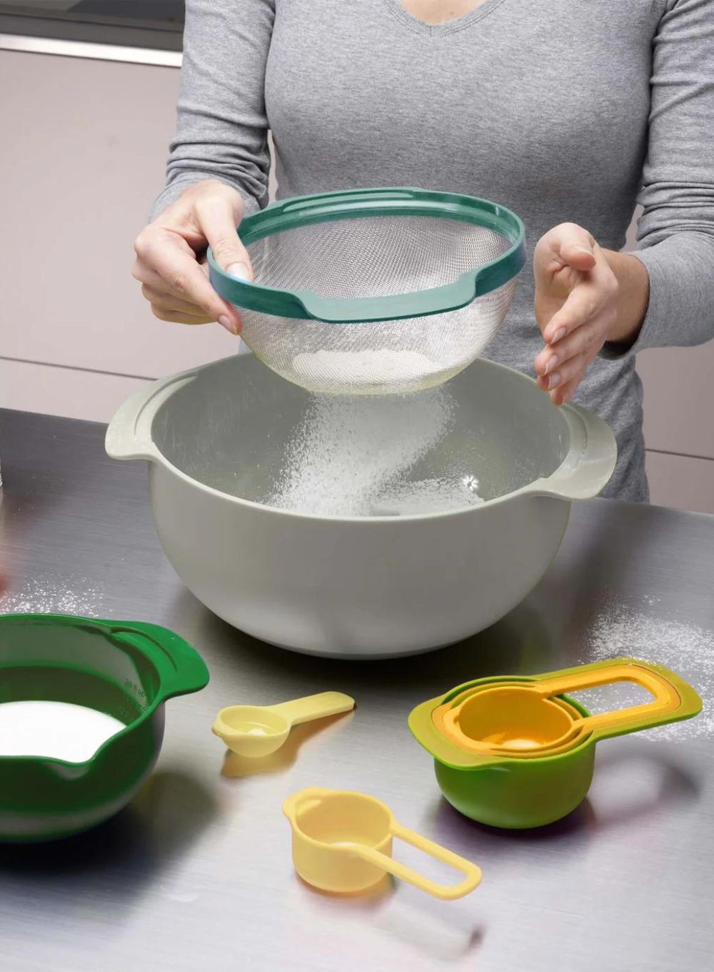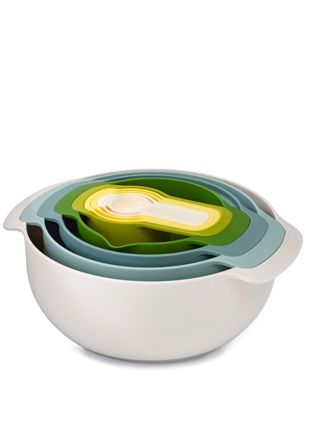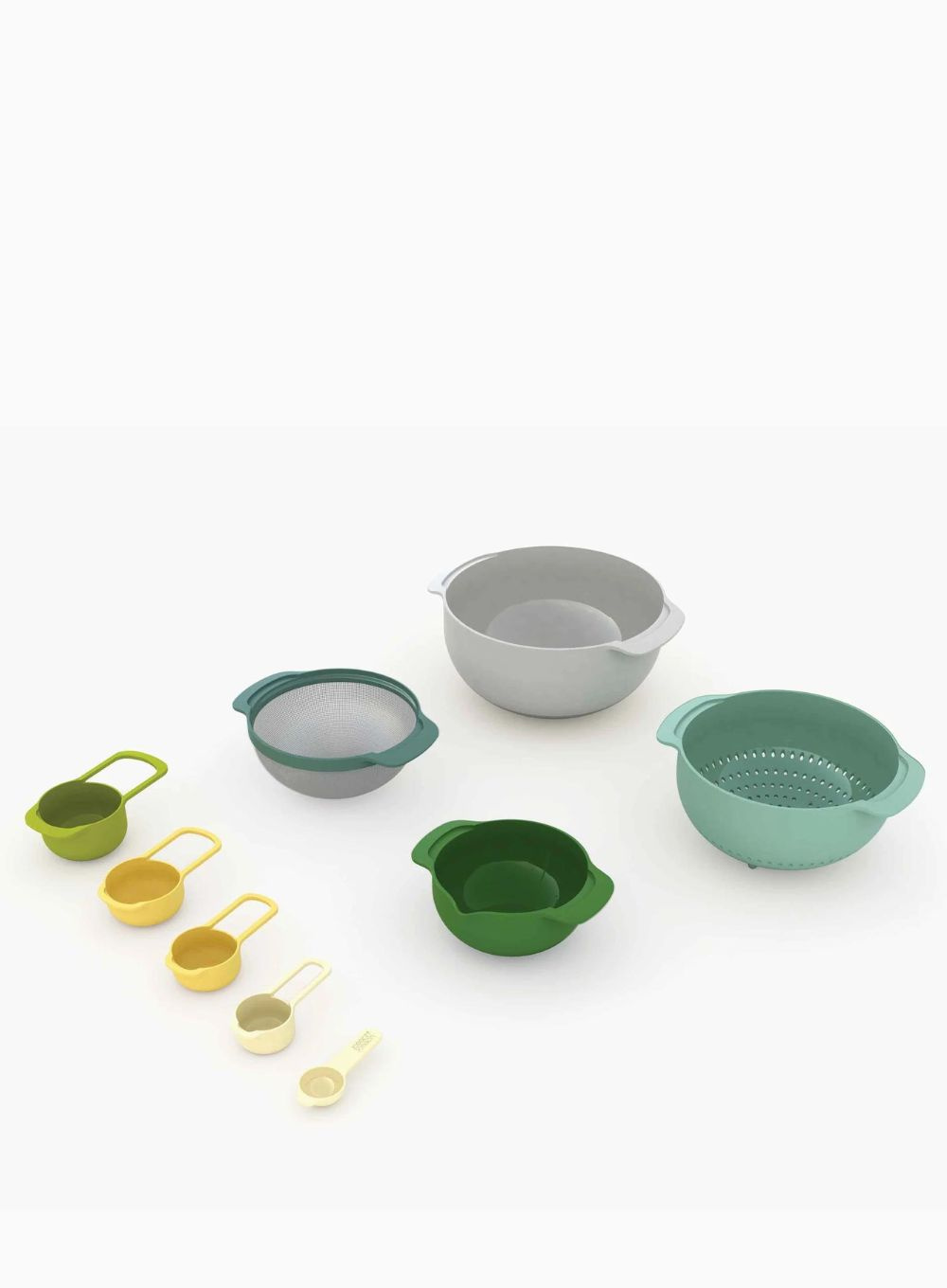 Miski i miarki kuchenne Joseph Joseph Nest™ 9 Plus Bowl Set to zestaw do przygotowywania wypieków, składników do gotowania w kompaktowej formie.