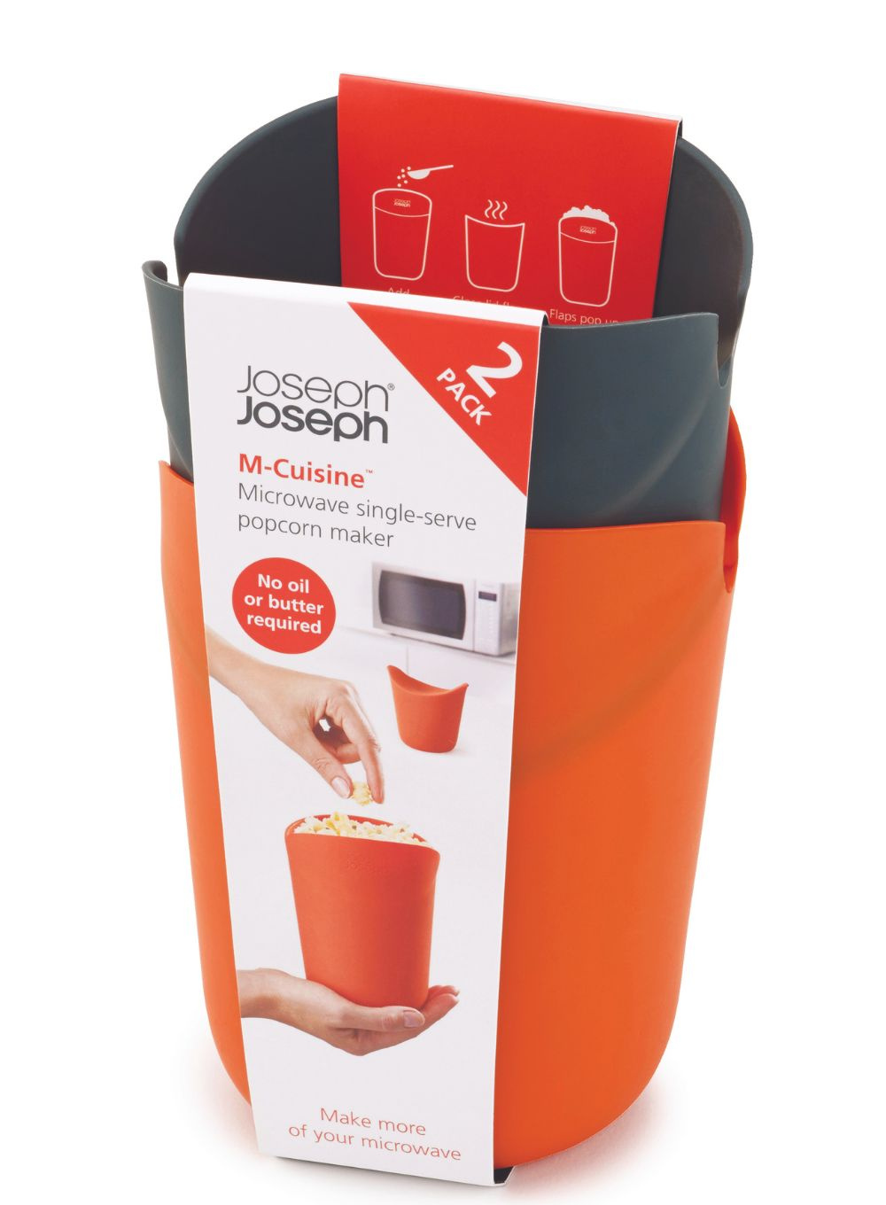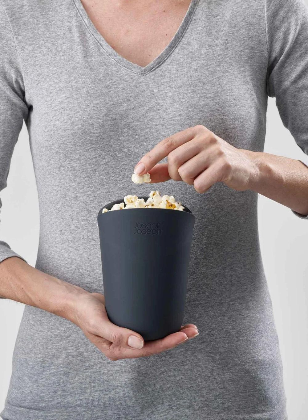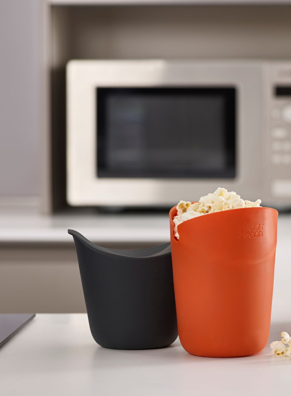 Zaprojektowane z żaroodpornego silikonu, nadające się do kuchenki mikrofalowej pojemniki do popcornu Joseph Joseph są idealne na wieczory filmowe. Podczas przygotowania nie ma potrzeby dodawania oleju ani masła. Każdy pojemnik zapewnia idealną wielkość porcji. Nadaje się do użytku w kuchence mikrofalowej o wysokości wewnętrznej większej niż 15 cm.