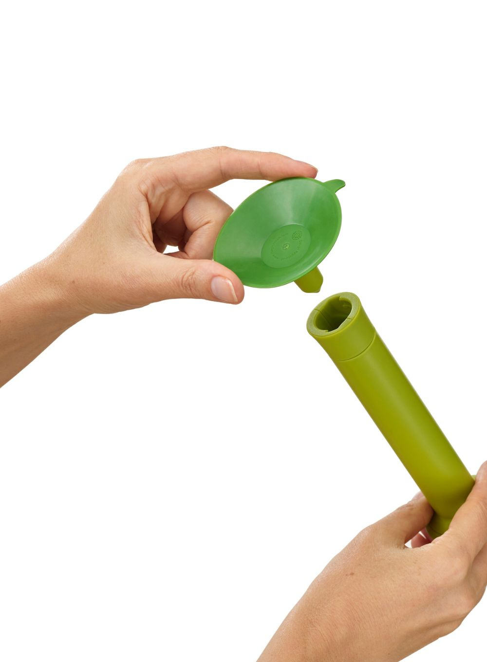 Aby używać jako konwencjonalnego durszlaka, wyjmij wrzeciono i przyssawkę i przytrzymaj za boczne uchwyty. Po zakończeniu wrzeciono i przyssawkę można umieścić w durszlaku, co ułatwia przechowywanie.