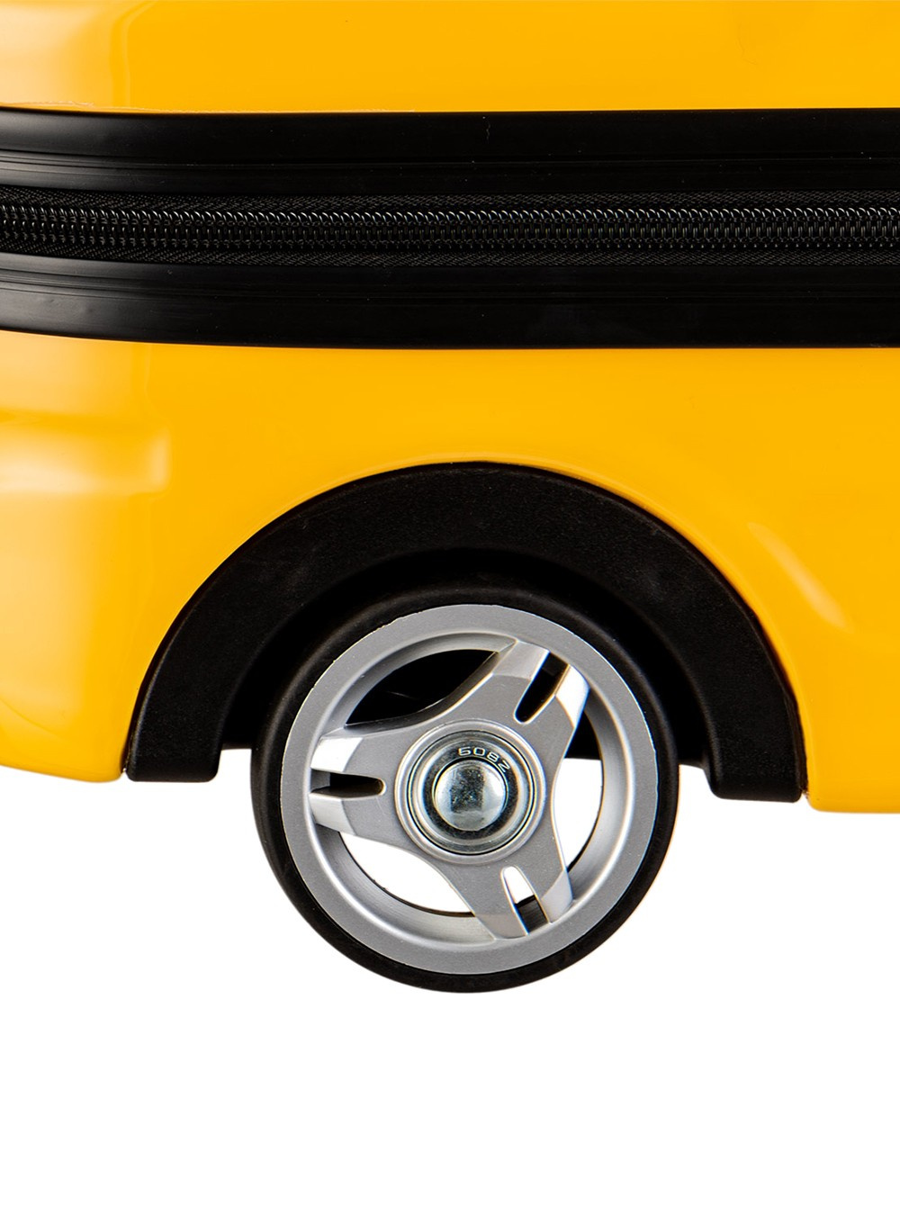 Walizka-samochód wykonana jest z trwałego i sztywnego materiału ABS z powłoką PC, dzięki której, powierzchnia jest bardziej odporna na zarysowania. Do każdej walizki dołączane są dwa zestawy naklejek* do samodzielnego ozdobienia.