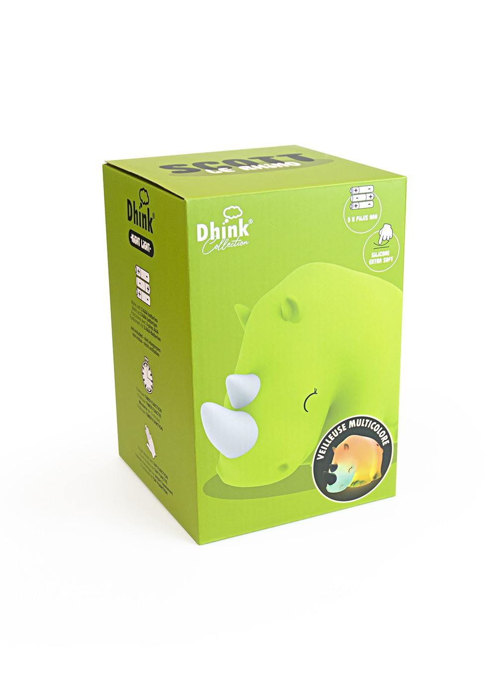 Lampka nocna z miękkiego silikonu na baterię Dhink przytulnie rozświetli pokój malucha. Dostępna w szerokiej gamie ciekawych i zabawnych wzorów, aby dziecko mogło wybrać swój ulubiony!