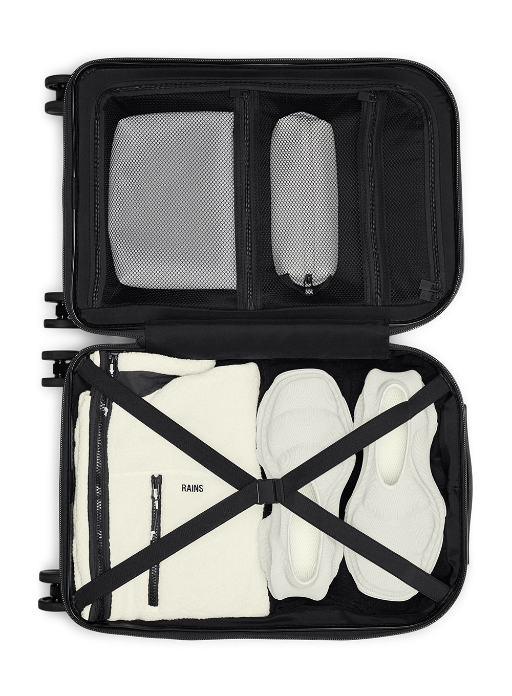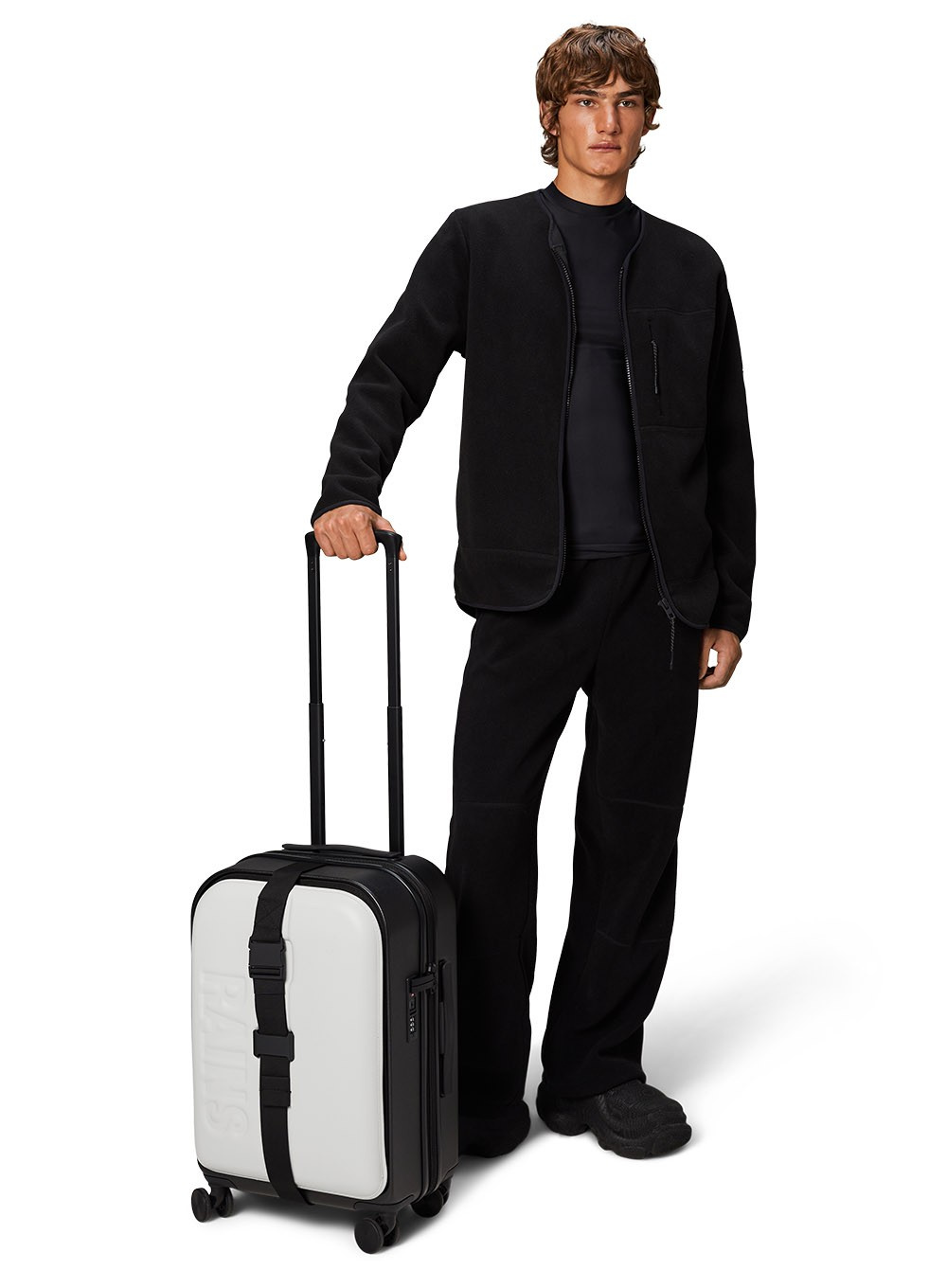Walizka kabinowa Texel to wersja Rains na 4 kołach, dostępna w wymiarach bagażu podręcznego.