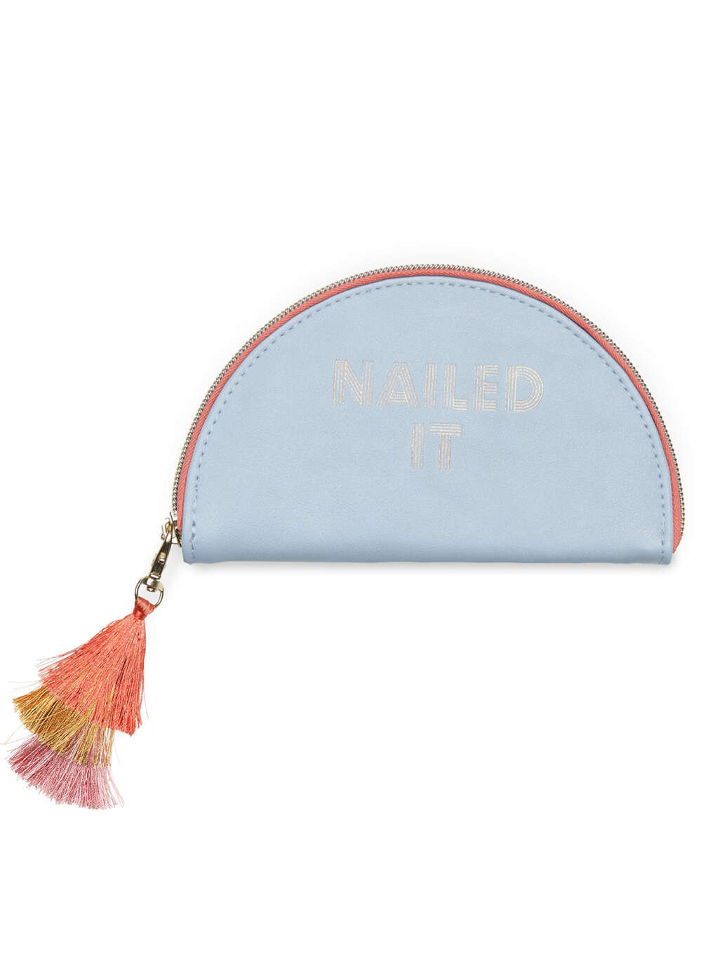 Etui ze skóry wegańskiej jest kompaktowe i zaprojektowane, aby można je zabrać ze sobą wszędzie. Eleganckie etui z akcentem ze złotej folii i kolorowym frędzlem jest zapinane na metalowy zamek błyskawiczny i będzie praktycznym prezentem nie tylko dla osób, które często podróżują.