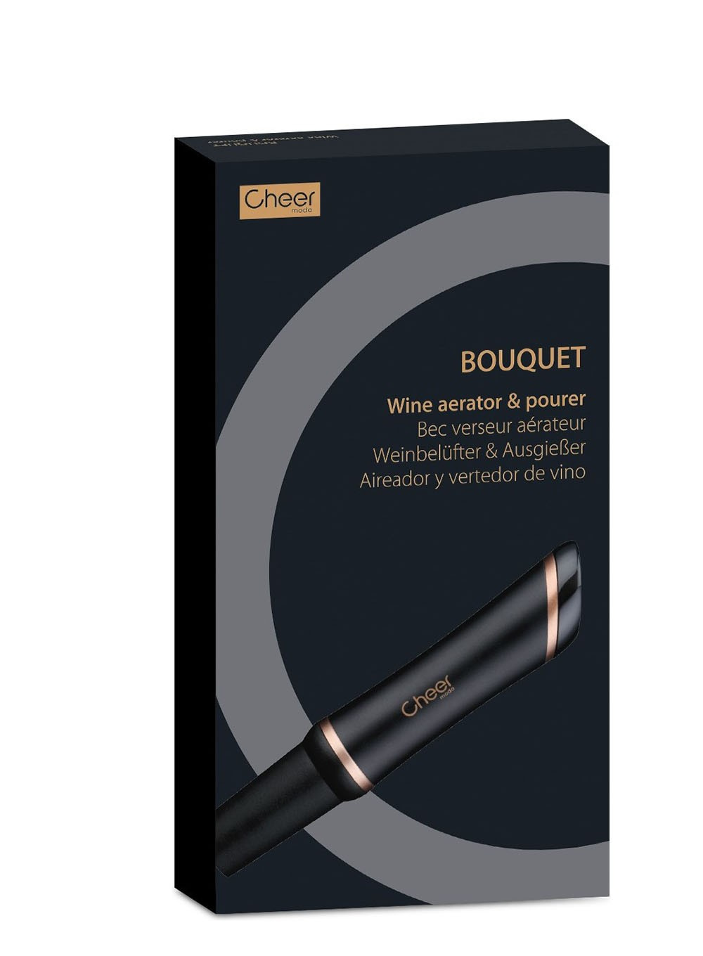 Nalewak z napowietrzaczem Cheer Moda Bouquet to kompaktowe akcesorium, dzięki któremu uwolnisz głębię aromatu i smaku wina w kilka sekund. Prosty i łatwy w użyciu pozwala cieszyć się wybornym smakiem trunku w dowolnym miejscu.