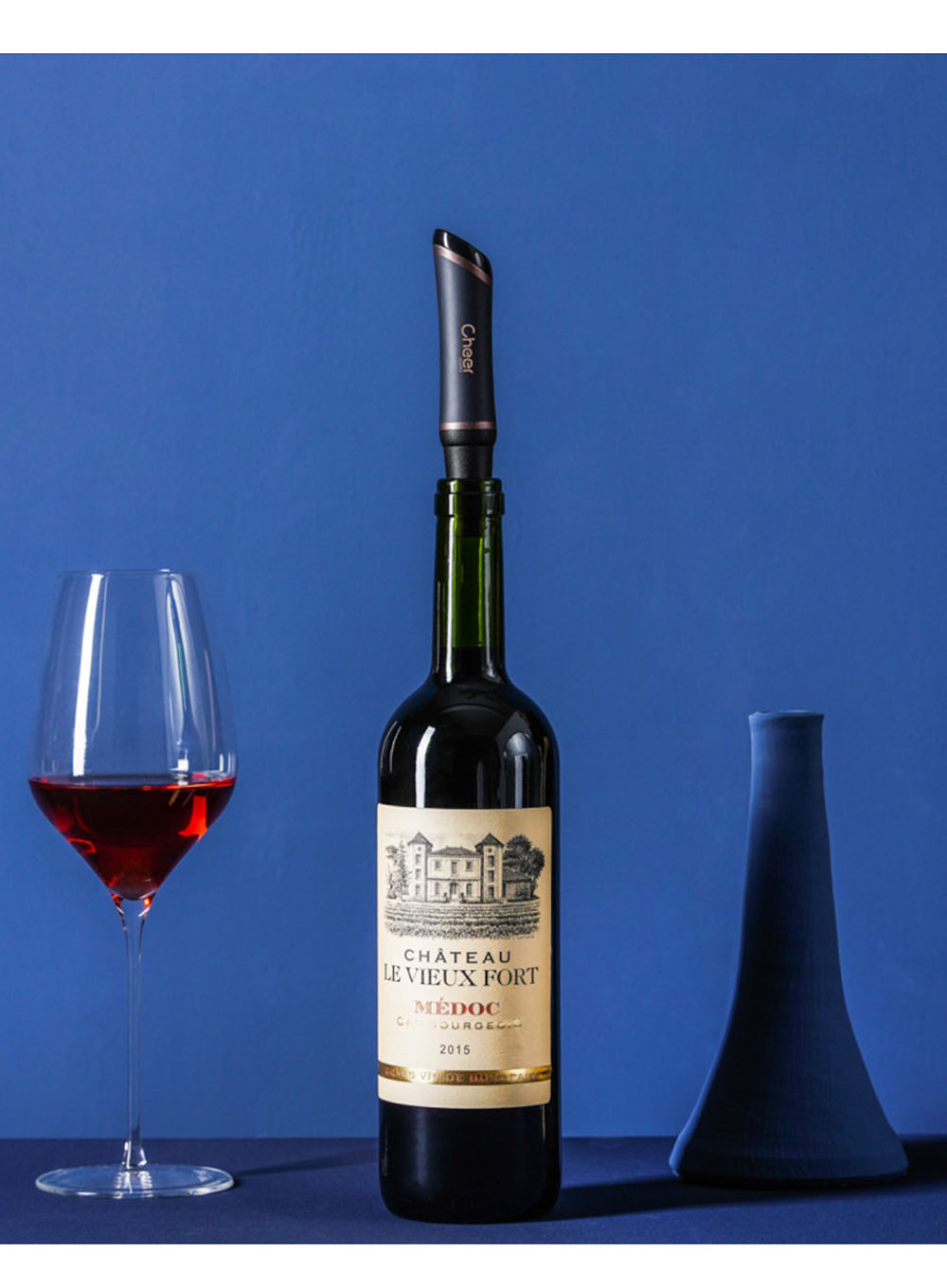 - Zaprojektowany z wlotem powietrza umożliwiającym natychmiastowe napowietrzenie wina, co odpowiada używaniu karafki przez 15–20 minut