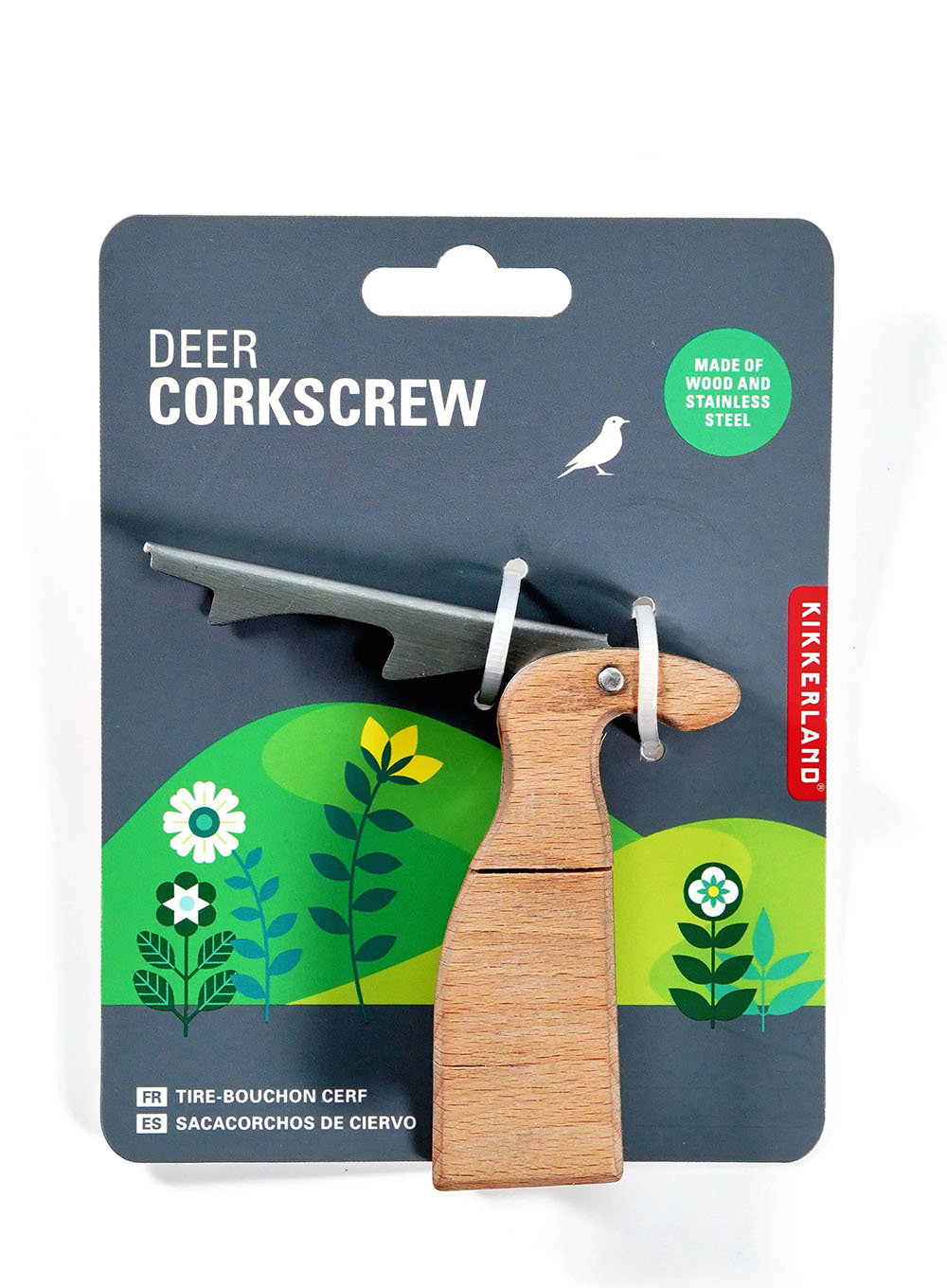 Korkociąg z otwieraczem do butelek o kształcie jelenia Kikkerland Deer Corkscrew to elegancki gadżet do domu i imprezy na świeżym powietrzu.