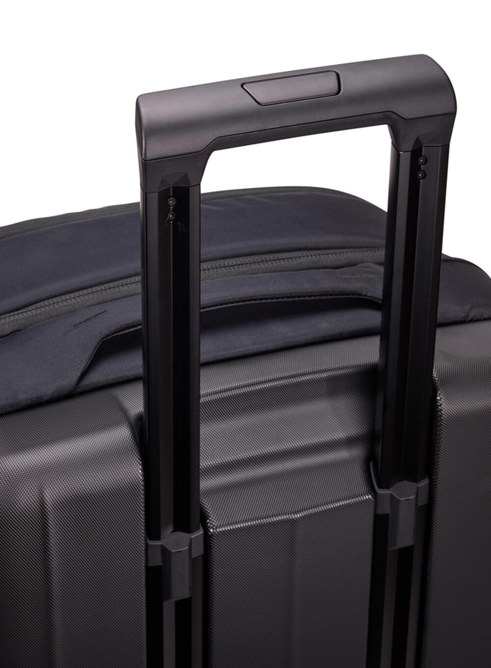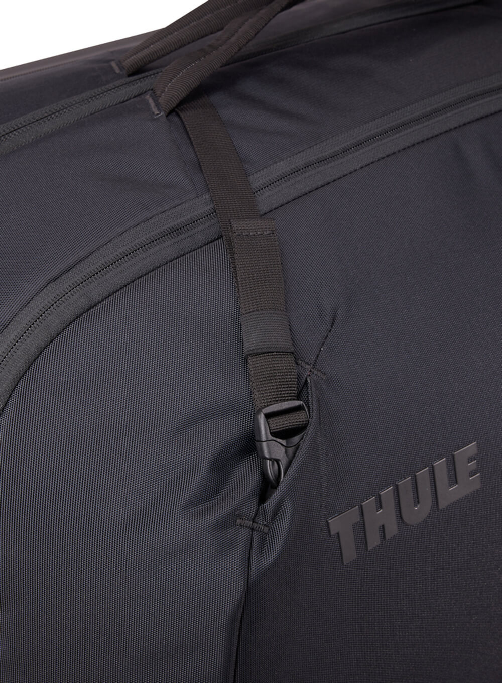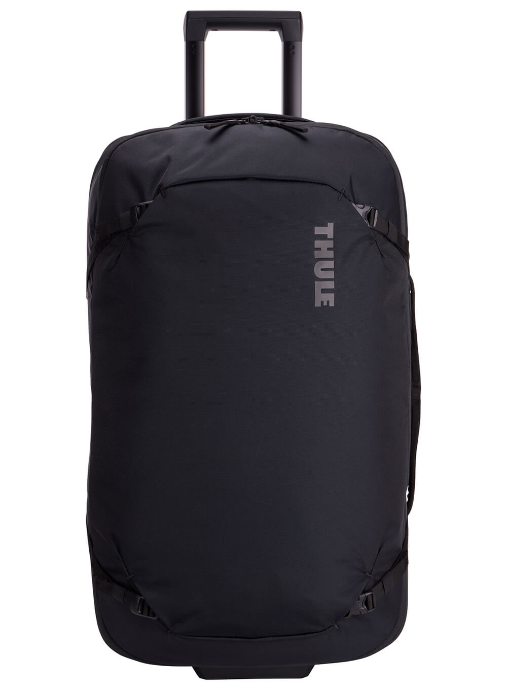 Duża torba Thule Subterra 2 Wheeled Duffel jest wyposażona w regulowany uchwyt teleskopowy, 2 solidne, wyrównane koła i wzmocnione uchwyty do podnoszenia i przenoszenia.