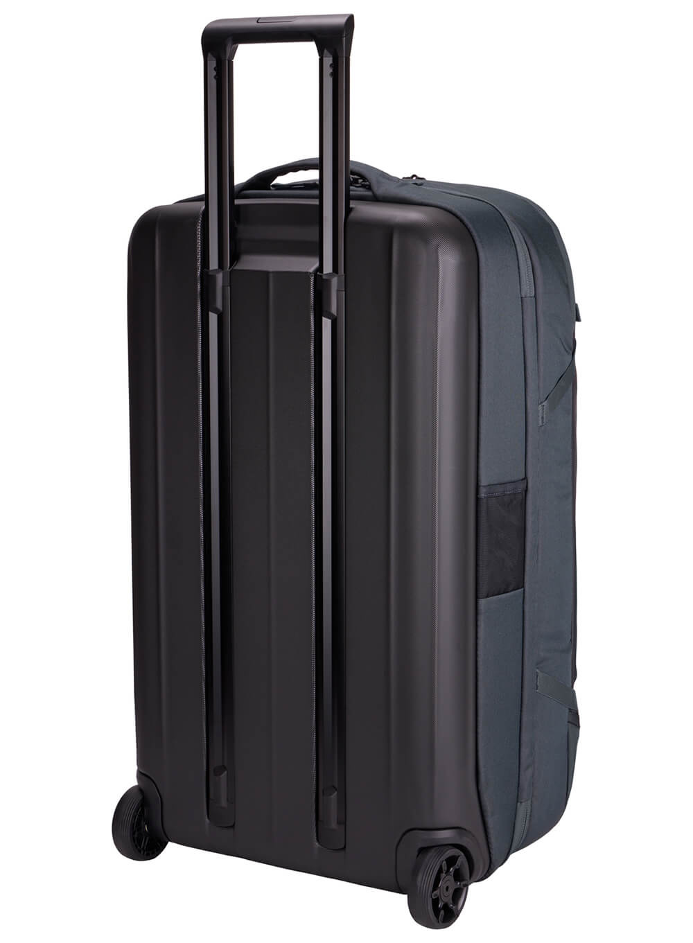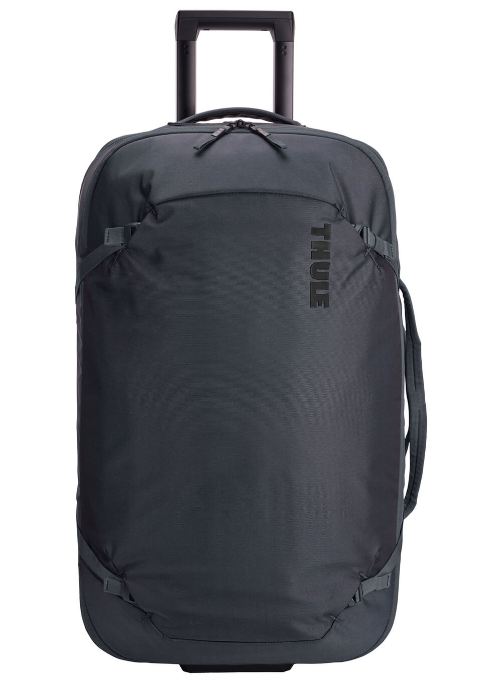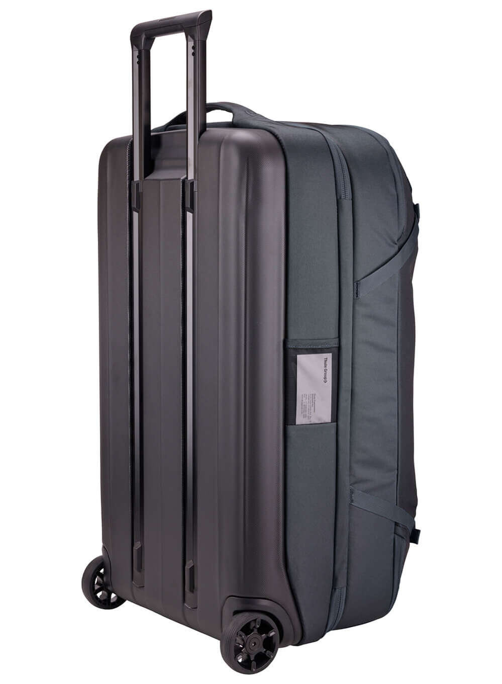 Duża torba Thule Subterra 2 Wheeled Duffel jest wyposażona w regulowany uchwyt teleskopowy, 2 solidne, wyrównane koła i wzmocnione uchwyty do podnoszenia i przenoszenia.
