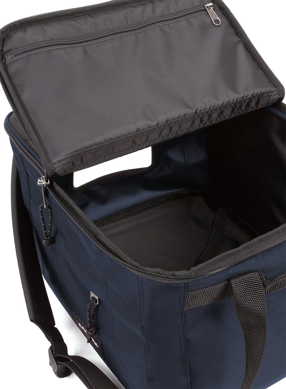 Średnia torba podróżna Eastpak Travelbox M z szelkami plecaka do przechowywania sprzętu kempingowego i rzeczy potrzebnych w podróży. Torba 2w1 o pojemności 50 litrów pozwala uporządkować najważniejsze rzeczy bez konieczności rozpakowywania po przybyciu na miejsce. Pokrywę można złożyć, dzięki czemu można ją trzymać w połowie otwartą, co zapewnia łatwy dostęp do rzeczy.