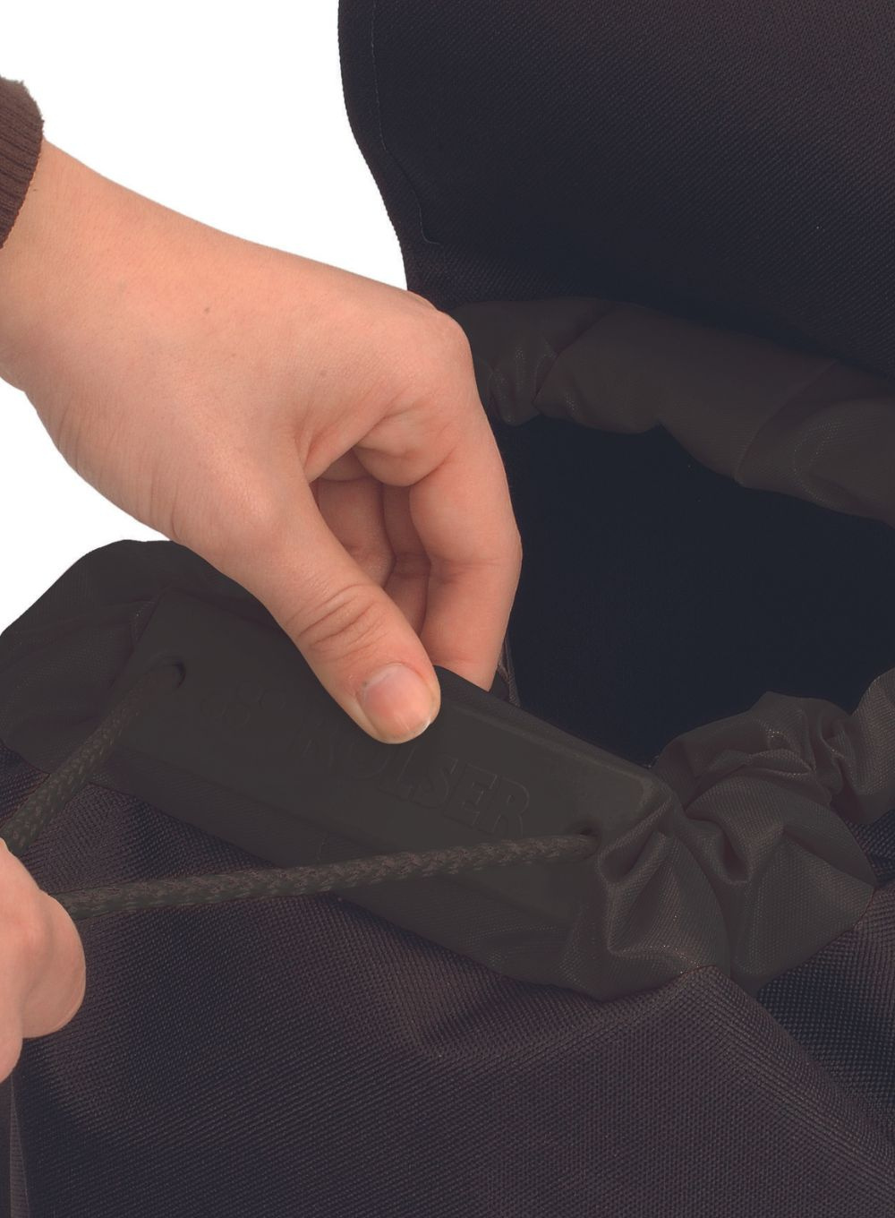 Torba ma format plecaka, ma podwójną kieszeń wewnętrzną, jest zapinana na sznurek, z oczkiem w klapie. Torba ma tylną kieszeń zapinaną na zamek i łatwo dopasowuje się do podwozia za pomocą klapy.