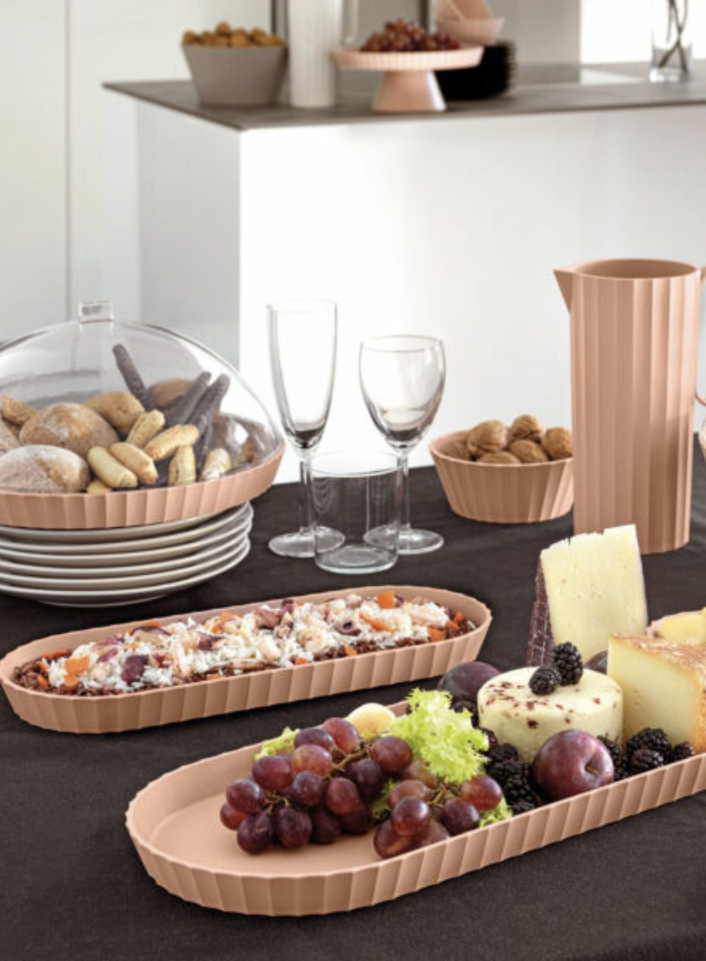Przechowuj i podawaj ulubione potrawy na uniwersalnej tacy o innowacyjnym projekcie. Minimalistyczny design pasuje do różnych stylów aranżacji stołu. Doskonale sprawdzi się zarówno podczas przyjęć organizowanych wewnątrz pomieszczeń jak i na świeżym powietrzu.